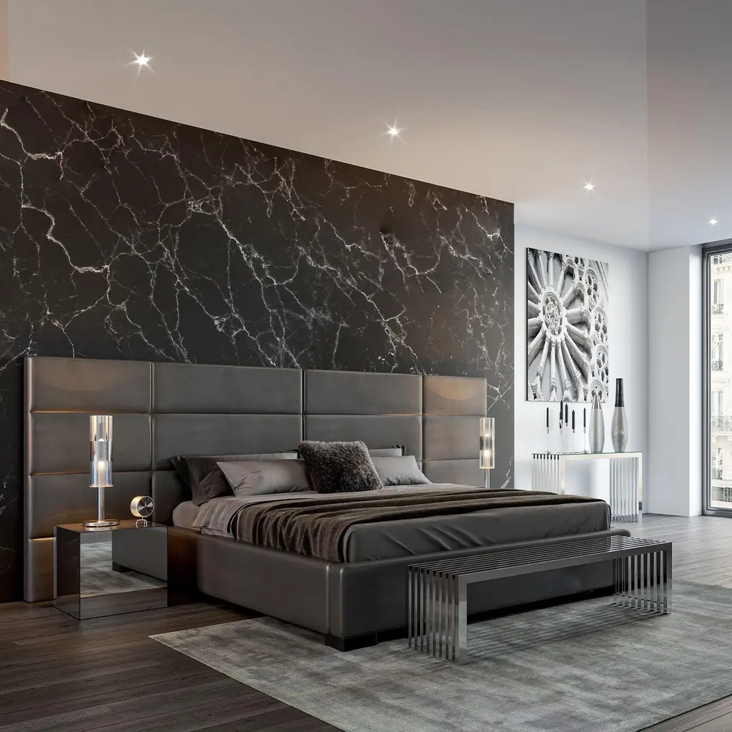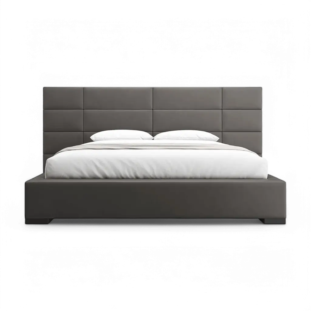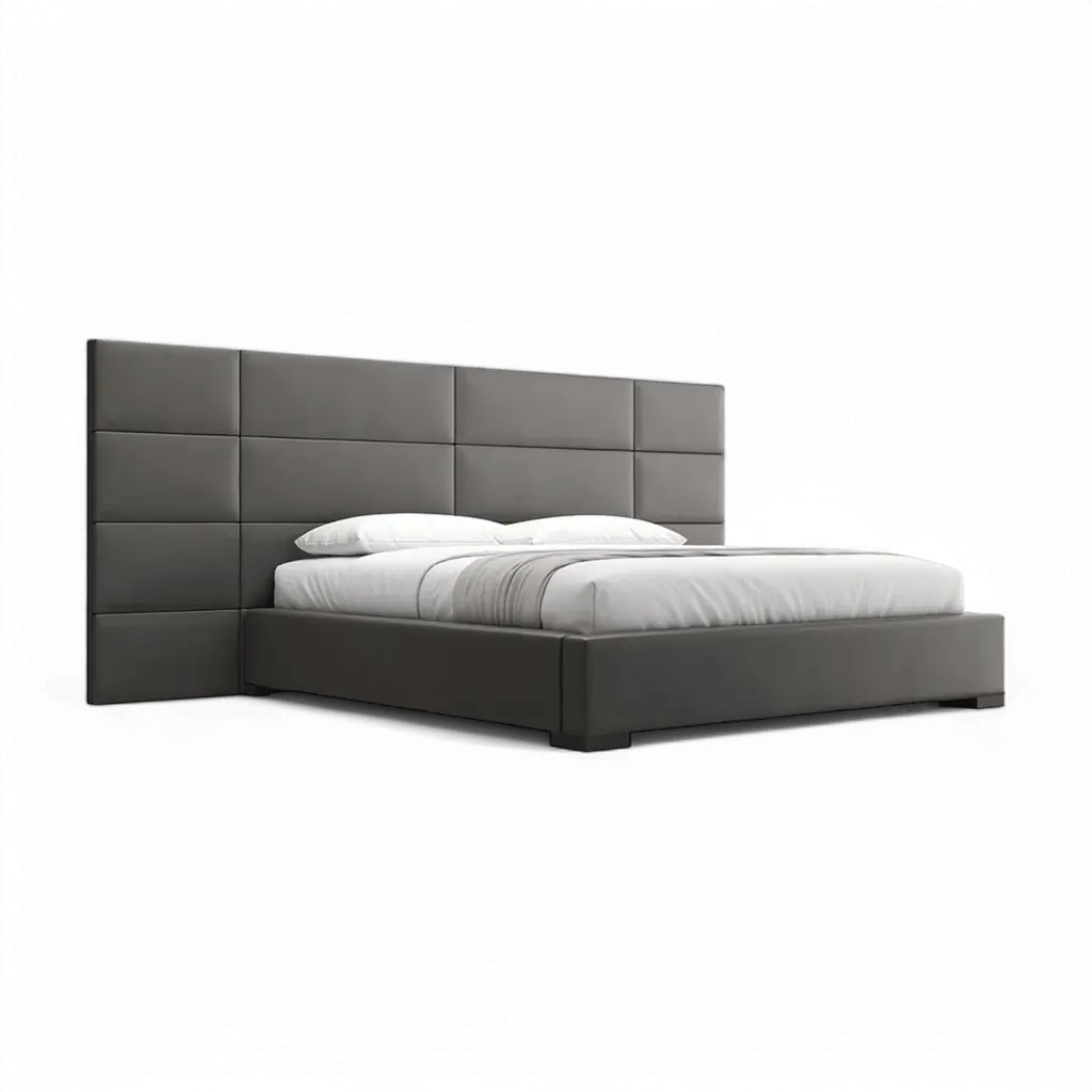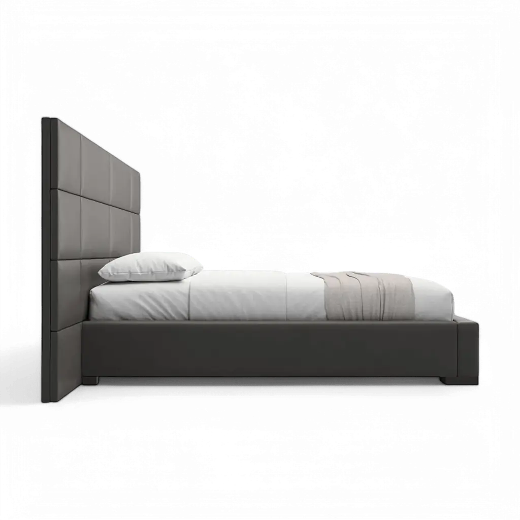 The grandeur of the oversized headboard on the William Bed in Gray will turn any space into a room fit for royalty. The sharp, clean lines and tufted, square panels add charisma and personality, while the padded cushioning lends support. The expansive frame has been covered in gray leatherette and is secured with exquisite stitching. Give your bedroom the contemporary upgrade it needs!