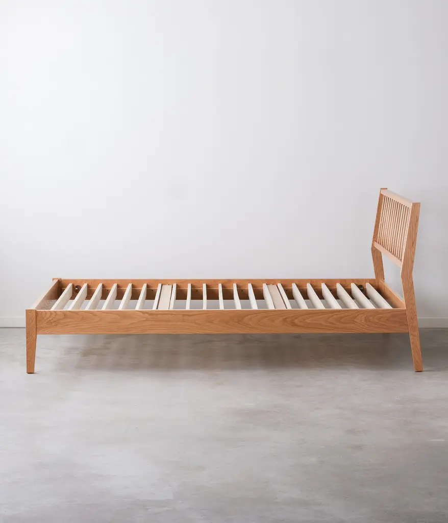 A slanted headboard makes early morning reading or late night movie watching all the more comfortable in our Windsor bed.