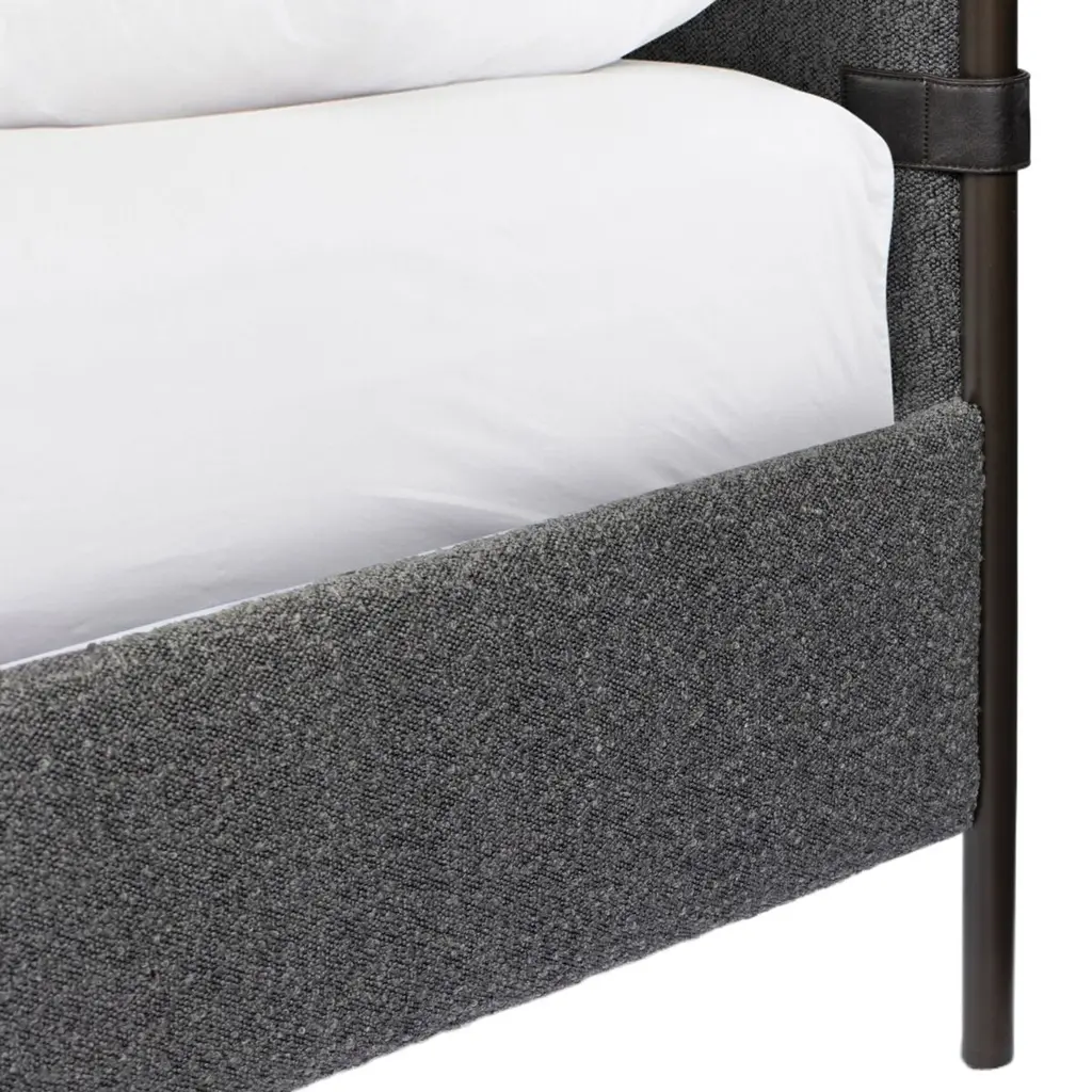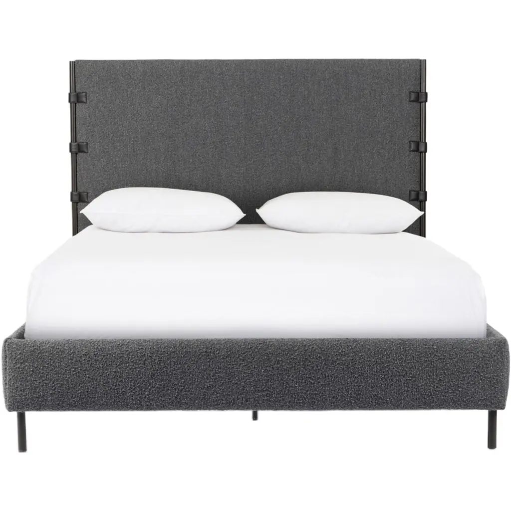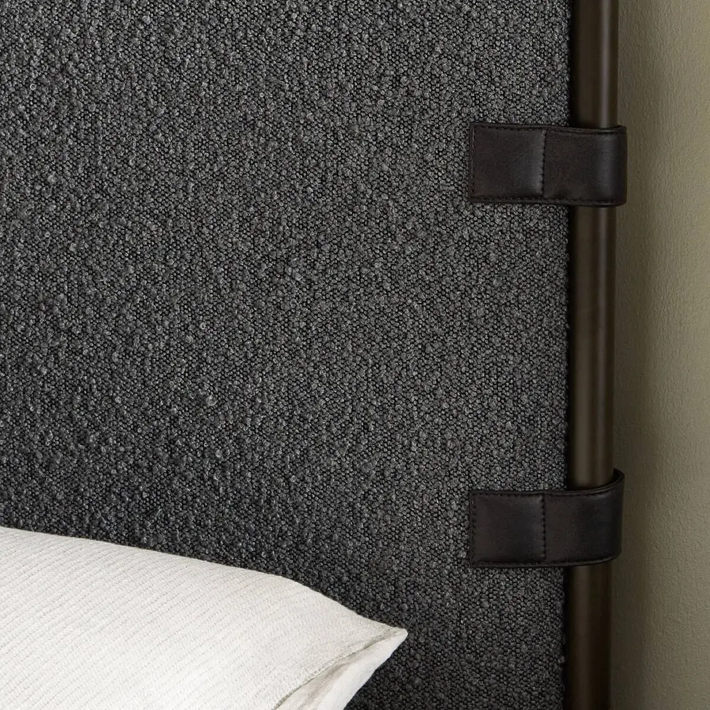Bring texture into play with the Winslow Bed. Upholstered in boucle fabric, it features decorative straps that add a touch of contrast and material-driven elegance. A standard box spring is required, ensuring a perfect blend of style and functionality.