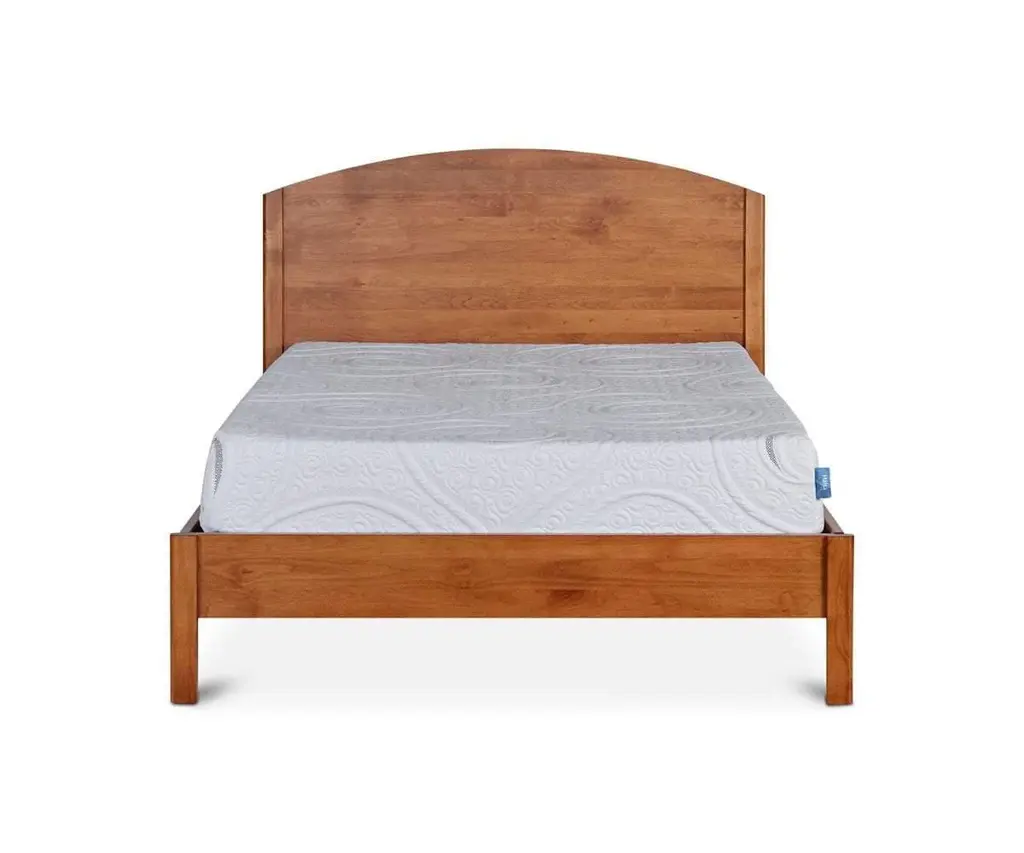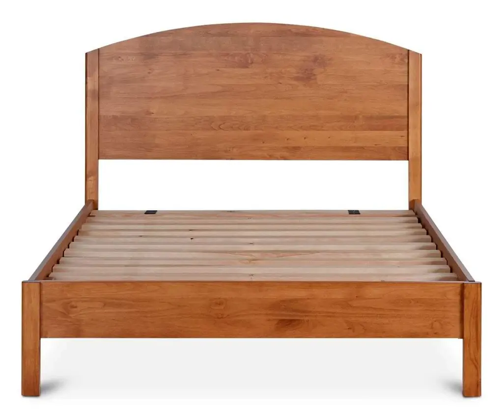 The traditional style of the Mia Bed embodies the essence of classic style with simple lines, a platform frame and an elegantly arched headboard. American-made and constructed from solid maple with a glowing honey-colored stain, this bed is sure to be a staple in your home for many years to come. *Queen bed pictured. Cal King available for special order. Made in the USA, this piece was crafted with a low carbon footprint, and is designed to last a lifetime. The solid domestic hardwood used was sustainably sourced from the lush forests of Oregon, and for each tree that was harvested three more were planted to replenish the forest and maintain the balance of the local ecosystem.