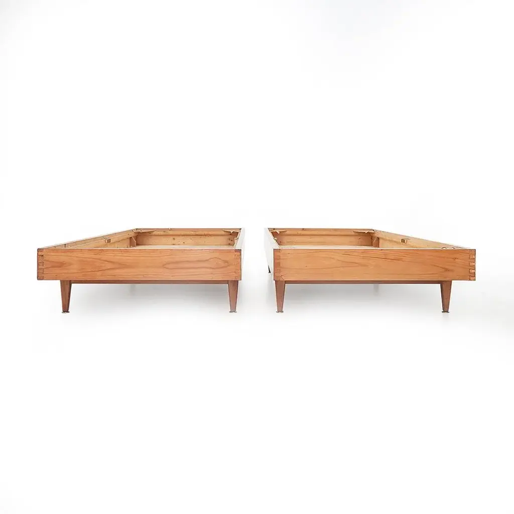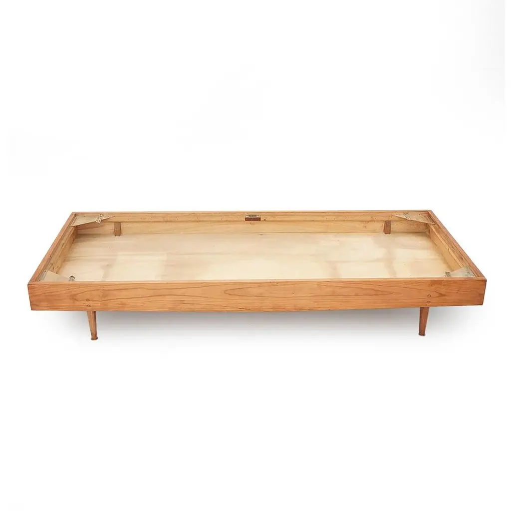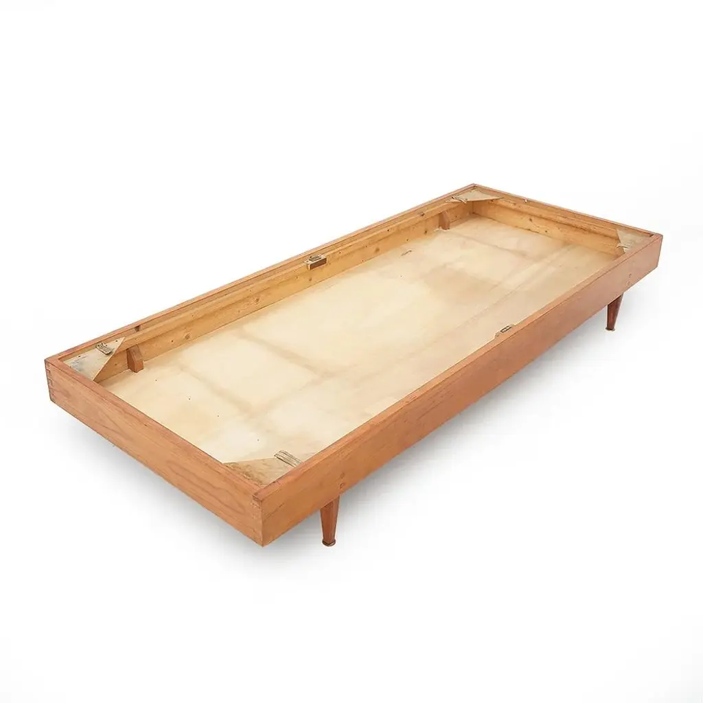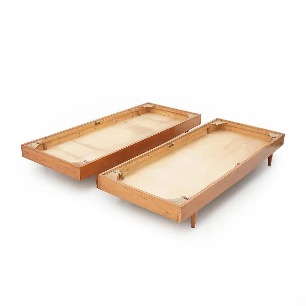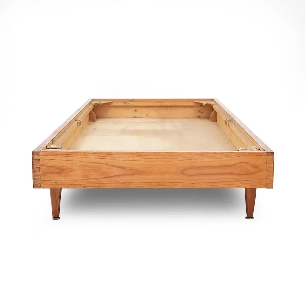 Structure in veneered wood. Legs in tapered wood with brass foot. Accommodates a max. 194x77.5 cm bed base The price refers to a single piece. Dimensions: Length 199.5 cm - Depth 83 cm - Height 30.5 cm
