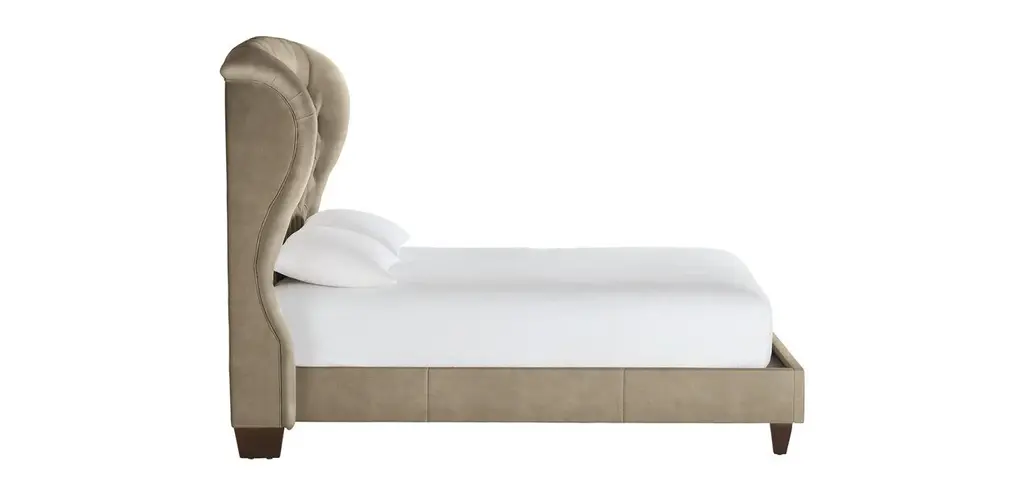 Bring the rich, luxurious look of leather into your personal sanctuary. Our Woolson tufted leather bed features a tall, winged headboard that we can tailor by hand in the leather of your choice, with optional nailhead trim.