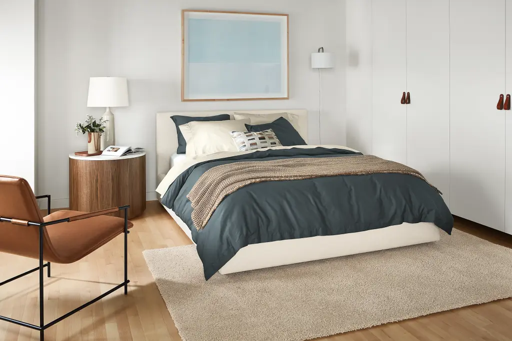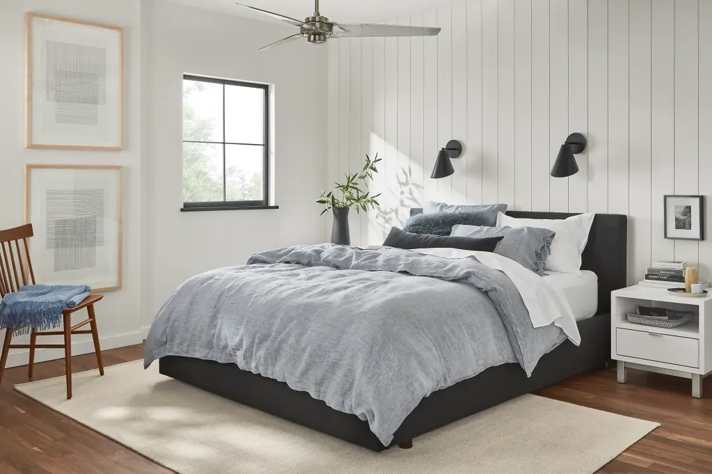 Our modern, low profile Wyatt bed brings streamlined style to your bedroom. Soft fabric upholstery makes it as sophisticated as it is comfortable.