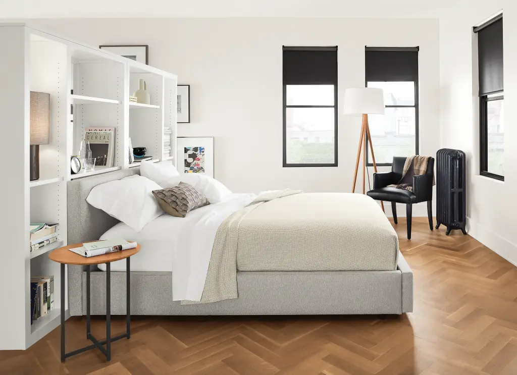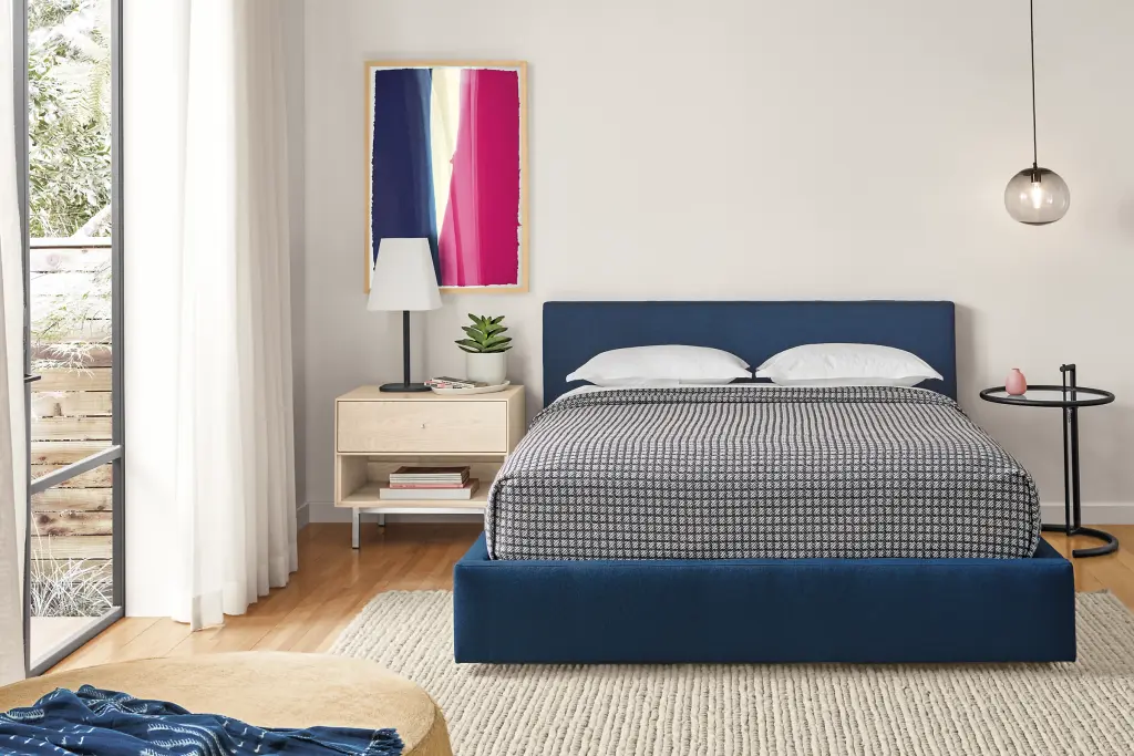 Our modern, low profile Wyatt bed brings streamlined style to your bedroom. Soft fabric upholstery makes it as sophisticated as it is comfortable.
