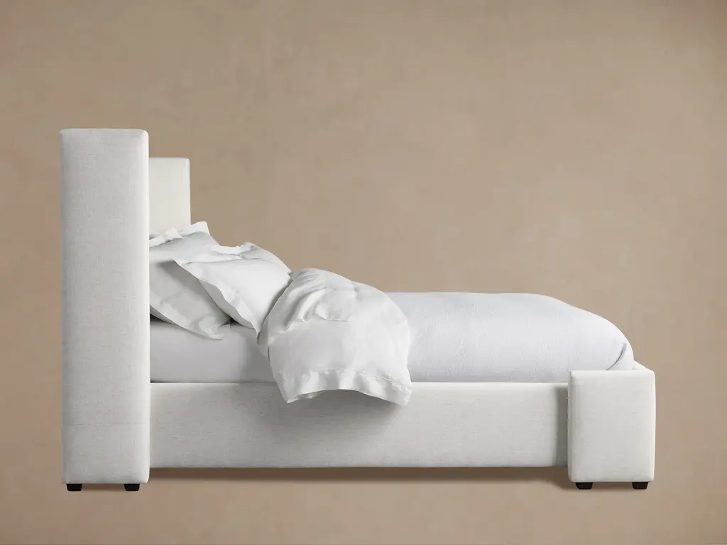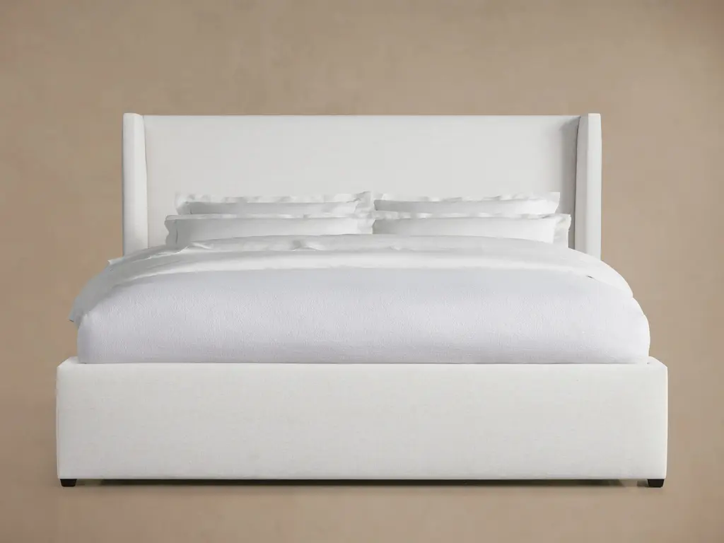 Our Wyller Collection’s luxurious, contemporary aesthetic is defined by soft, shelter-profile silhouettes with clean lines. Expertly tailored upholstery hand-sewn by artisans features sumptuous fabric, creating a relaxing and restful retreat.