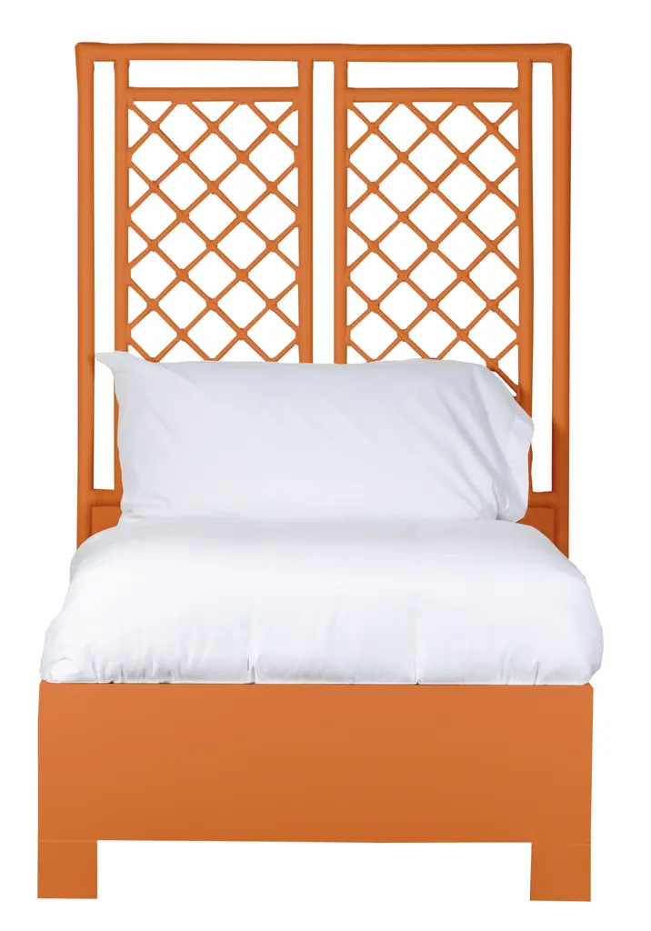 A timeless design, this classically styled bed features a Rattan headboard with a Maple Bed Frame. The Rattan headboard is hand-wrapped with Rawhide Bindings to add a beautiful contrast and strength. The Maple Bed Frame, which accepts a box spring and mattress, is built in the USA. The Rattan headboard easily attaches to the Bed Frame. Each bed is custom made and finished to order. This bed is an artistic centerpiece and will make a statement in any bedroom.