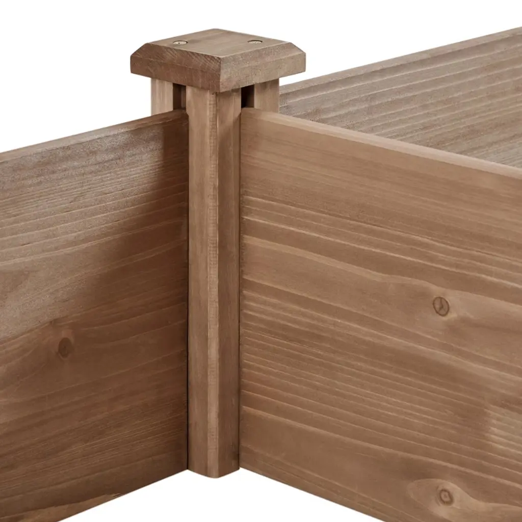 Plan to build a dream garden in your backyard? Let us help you. This wooden garden bed is exactly what you need for improving the garden. The garden box is made of 100% natural wood without paint. With this practical garden bed planter, you can grow two different plants or try different planting methods at the same time, or remove the middle partition to have a whole box as you need. The assembly is required, and the instruction and screws are included in the package. * Specifications: Material: Solid WoodColor: Wood, Dark Brown, GrayDimension: 92.5 x 47.5 x 10 inch(L x W x H)Inner Size of Each Box: 44.5 x 44.5 x 9 inch(L x W x H)Wood Board Thickness: 0.6 inch Please see the image for exact measurements.Please allow ±0.39inch errors due to manual measurement.