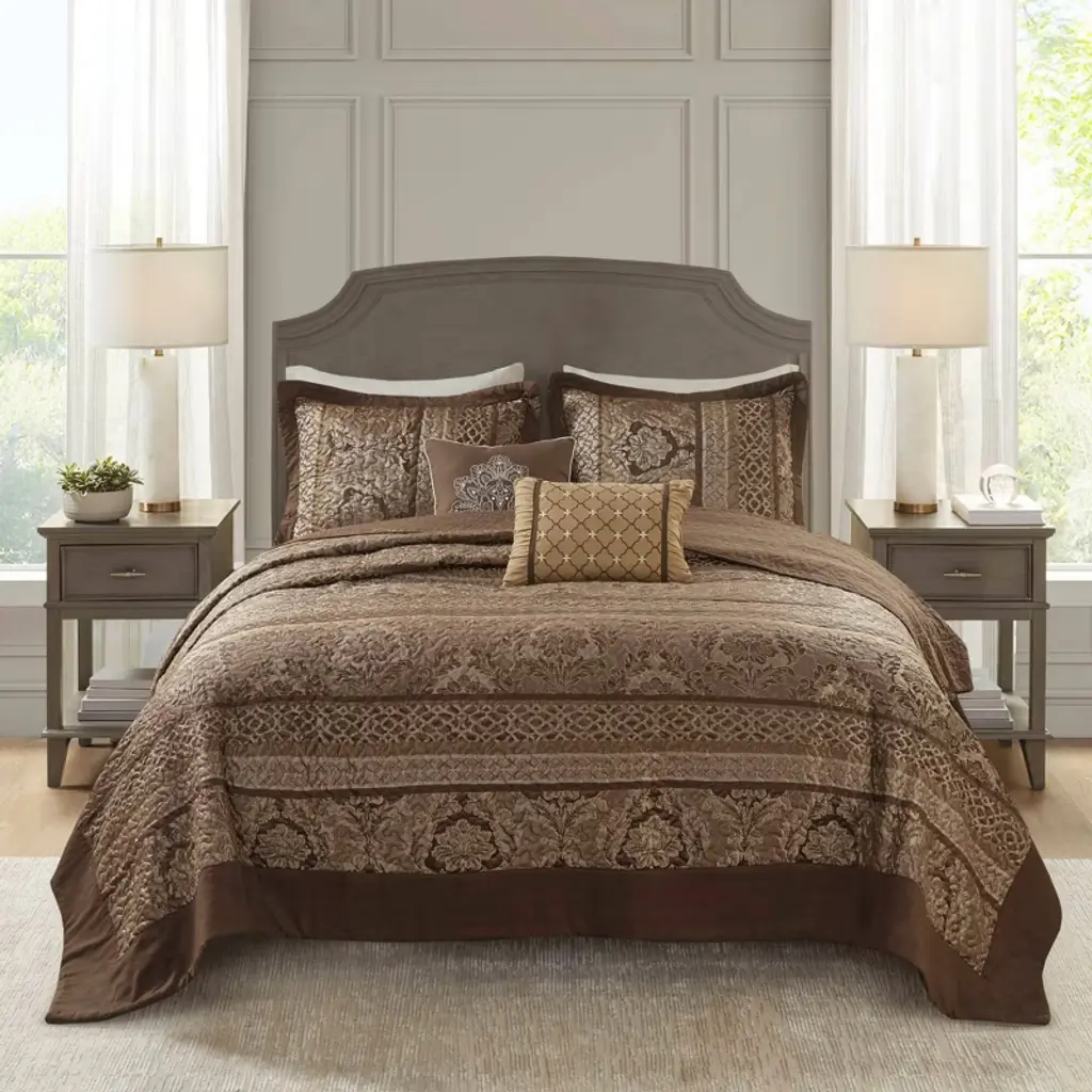 5Pc King Mirage Polyester Jacquard Bedding Set Brown: Madison Park, Lightweight Fabric, Cotton & Polyester Fill