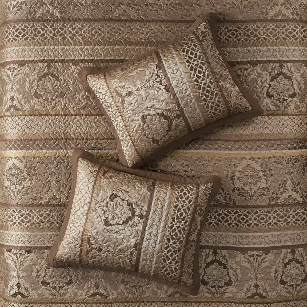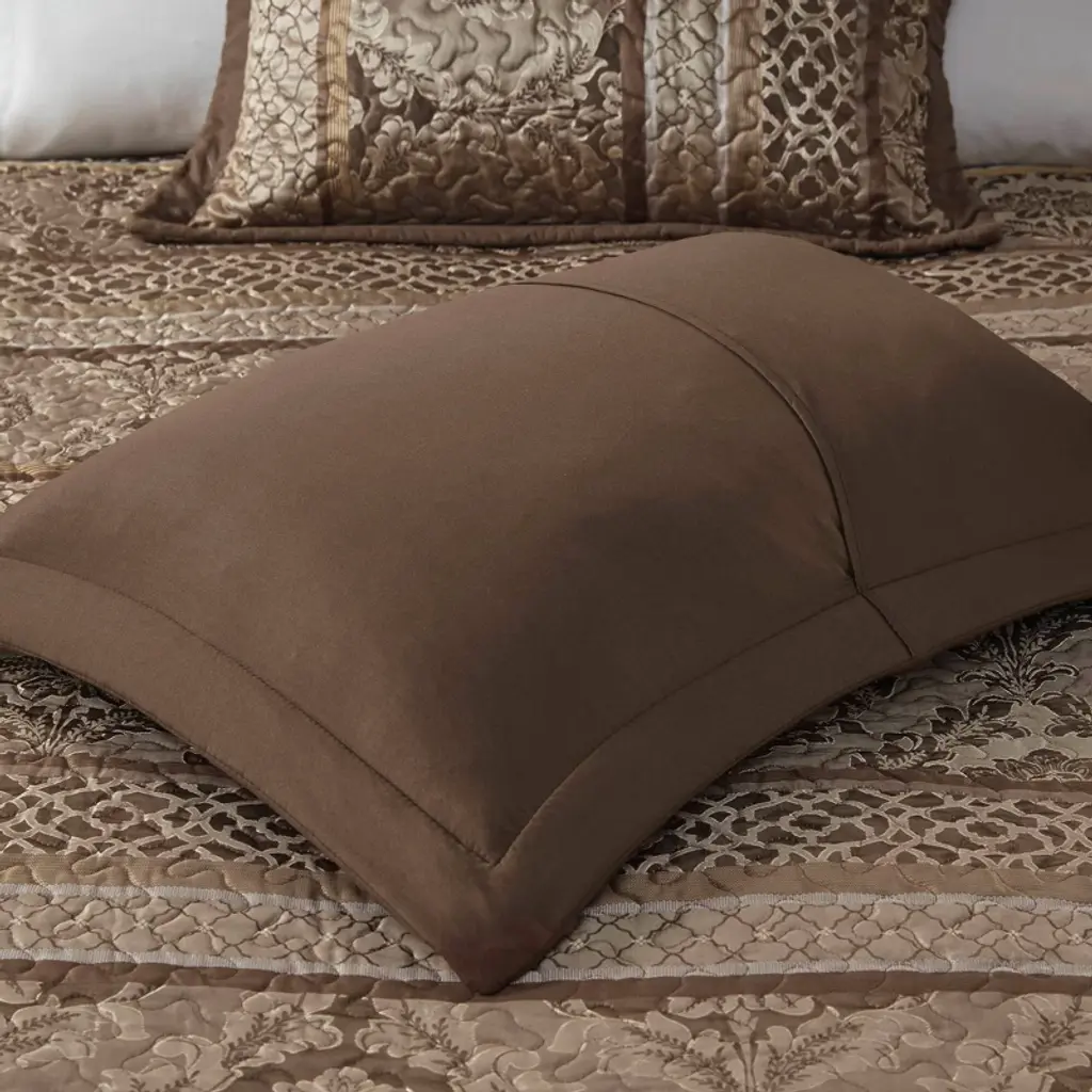 5Pc Queen Mirage Polyester Jacquard Bedding Set Brown: Madison Park, Lightweight Fabric, Cotton & Polyester Fill
