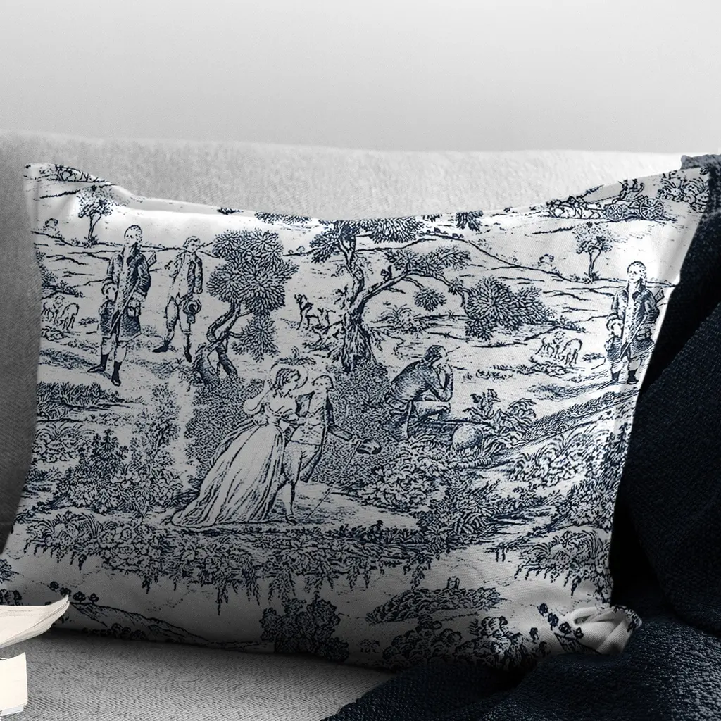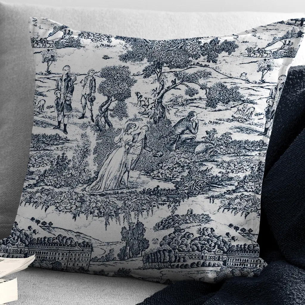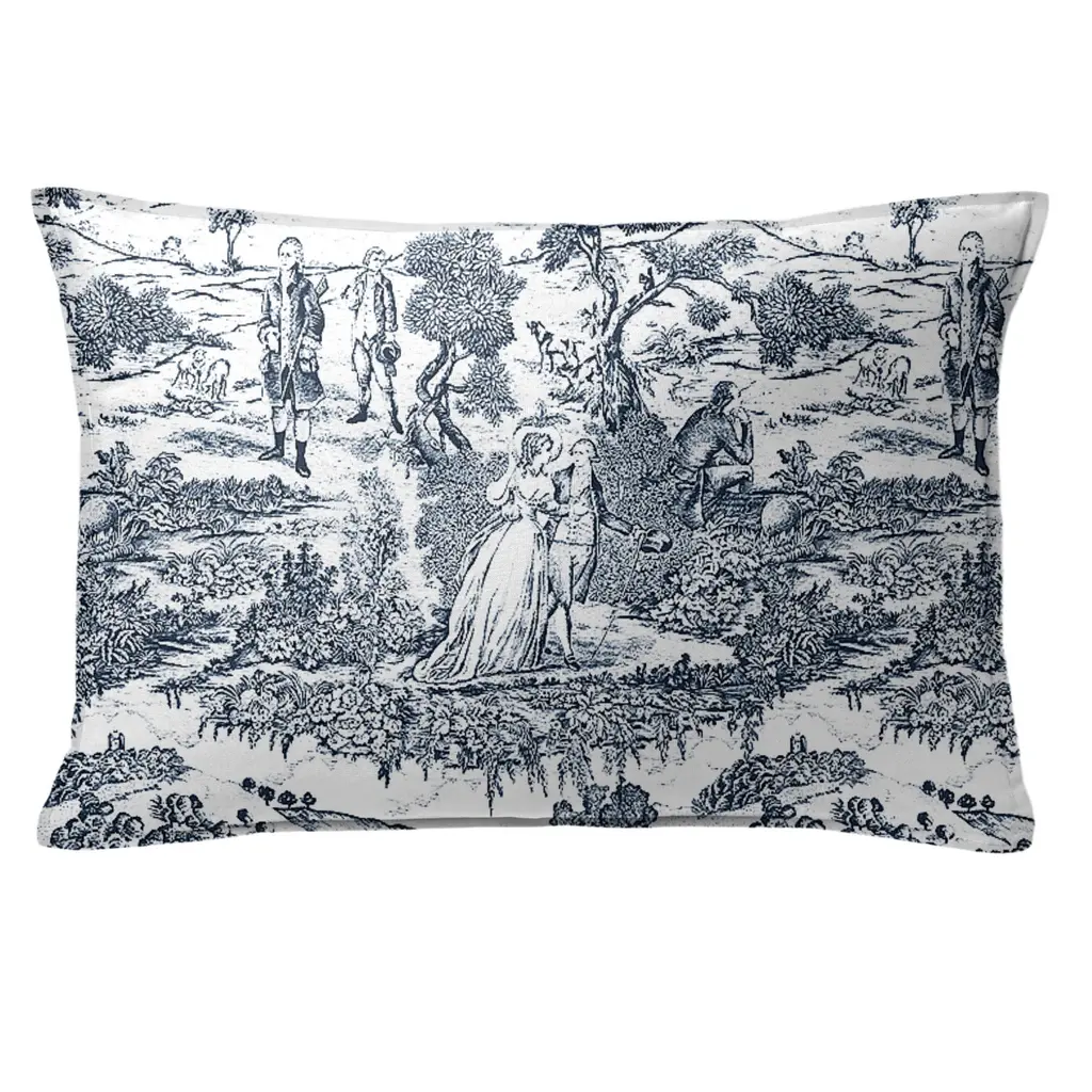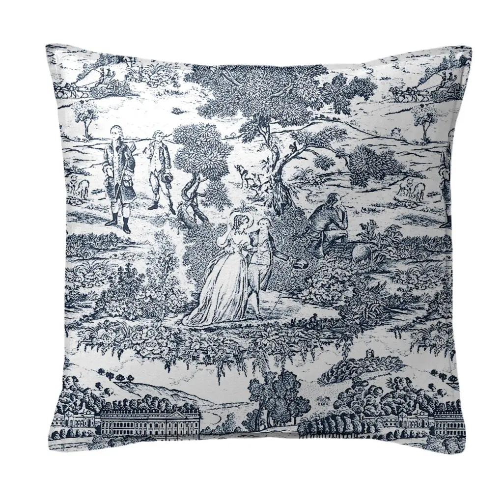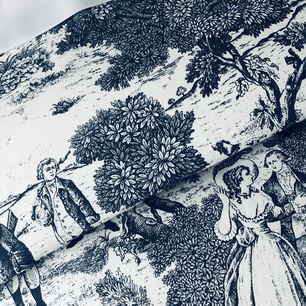 Beau Toile is a timeless French-inspired toile design. Although toile has been around since the 18th century, the two-toned classic pastoral classic motif can hold its place in modern decor.