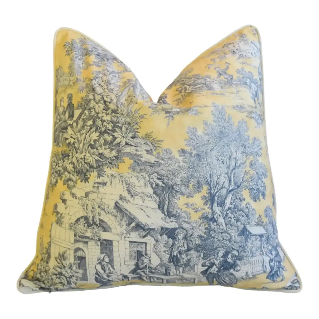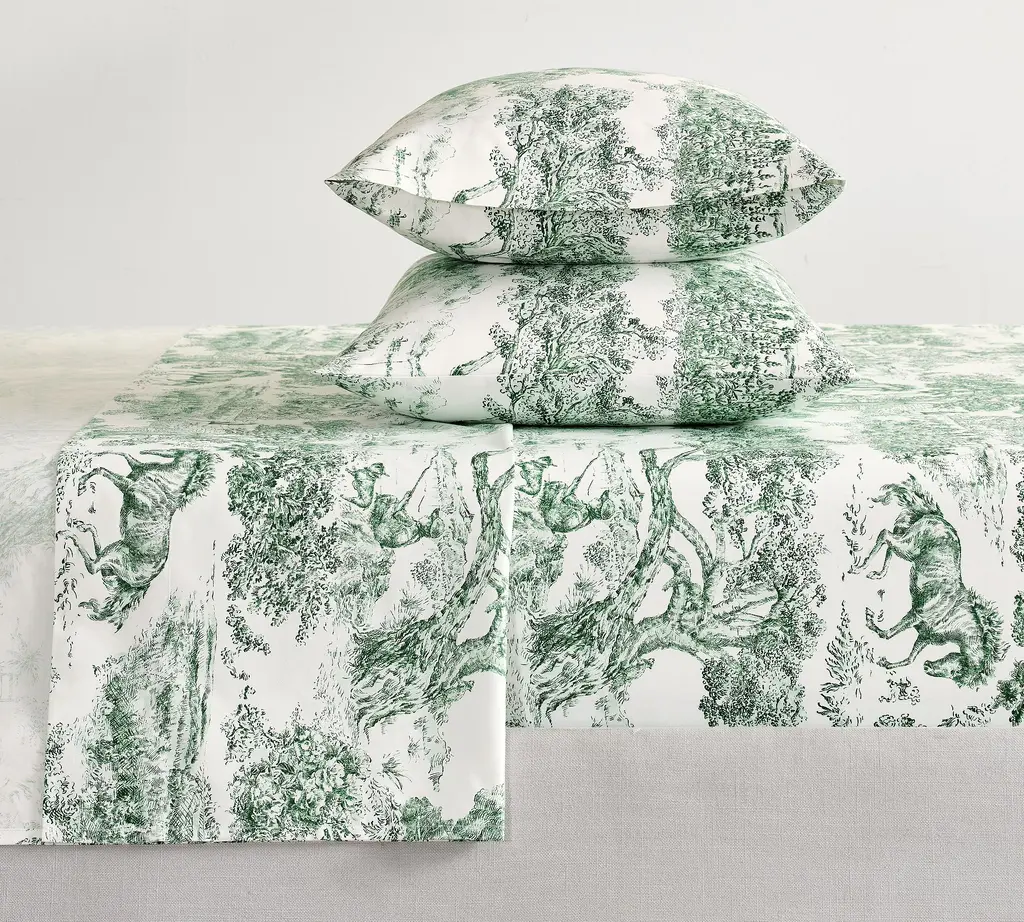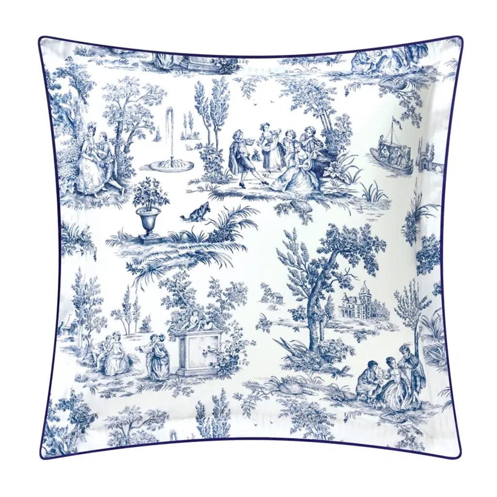 Beau Toile is a timeless French-inspired toile design. Although toile has been around since the 18th century, the two-toned classic pastoral classic motif can hold its place in modern decor.