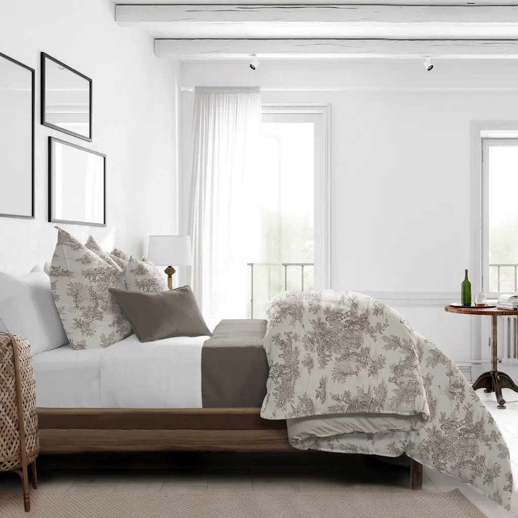Bouclair Toile is a timeless French-inspired toile design. Although toile has been around since the 18th century, the two-toned classic pastoral classic motif can hold its place in modern decor.