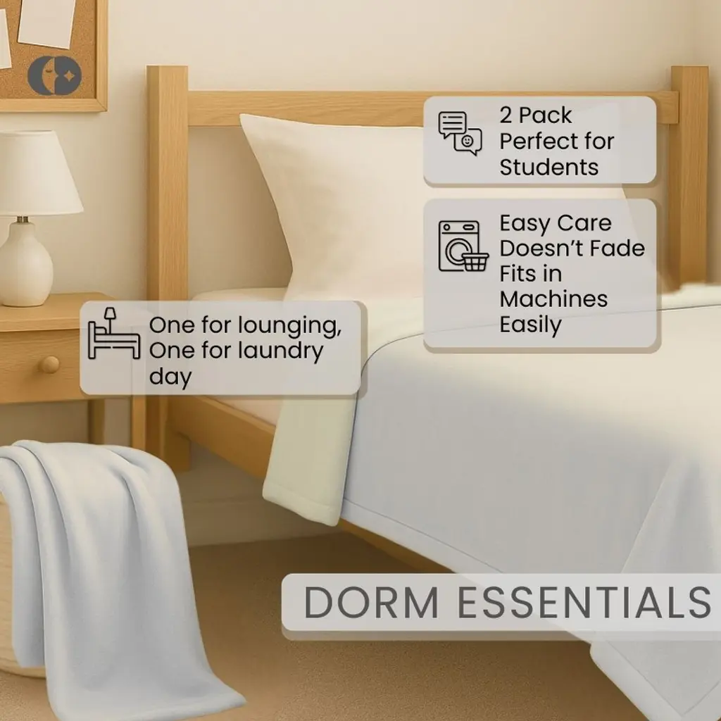 Bring comfort and personality to your dorm or bedroom with the Continental Bedding Microplush Fleece Throw Blanket 2-Pack. Each blanket measures 50 x 70 inches, sized perfectly for Twin and Twin XL beds. Made from ultra-soft microplush fleece, these blankets are lightweight, breathable, and ideal for year-round use. Available in four campus-inspired shades: Paperclip (a soft light gray), Textbook (a clean ivory), Blue Pen Only (a light baby blue), and Eraser (a gentle light pink), each color adds a subtle pop to your space. Easy to care for and machine washable, these blankets are perfect for layering, lounging, or sharing with a roommate.