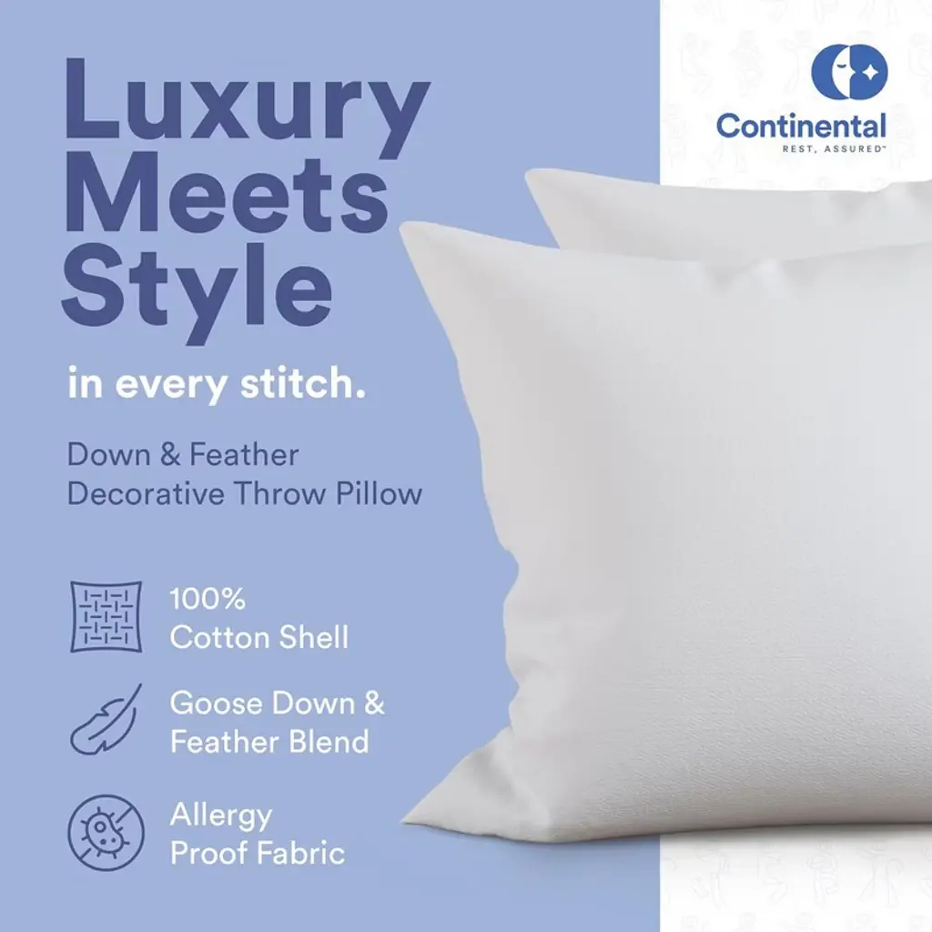 Continental Bedding Throw Pillow Inserts 10% White Goose Down 90% Feather Pillow Insert 24x24 Inch Pack Of 2