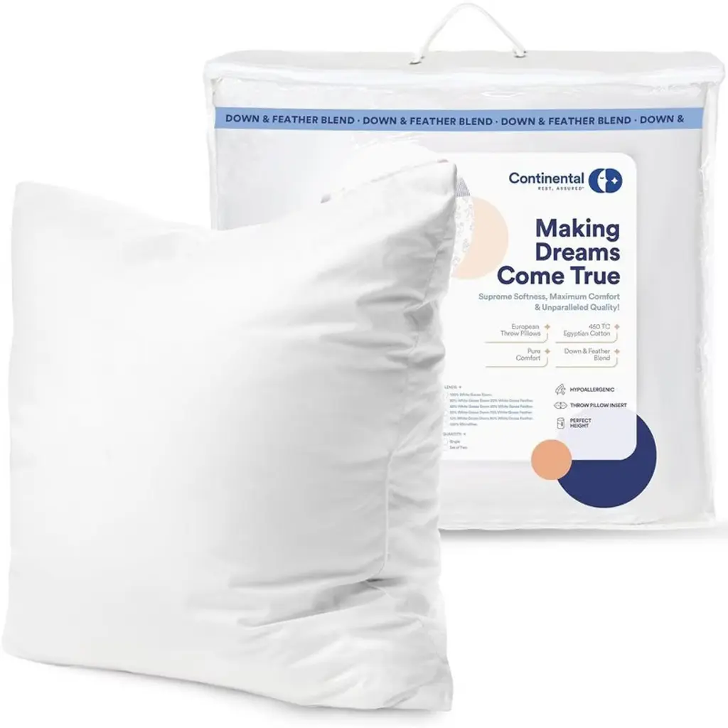 Continental Bedding Throw Pillow Inserts 25% White Goose Down 75% Feather Pillow Insert 16x16 Inch Pack Of 1