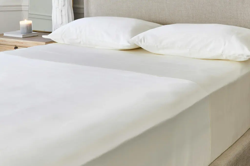 Sleep in silky-soft comfort with our 300-thread count organic sateen cotton sheets and our supportive and cooling graphite memory foam pillows.