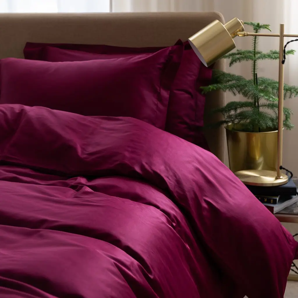 Cotton Bedding Set Burgundy Uk Super King, Us King