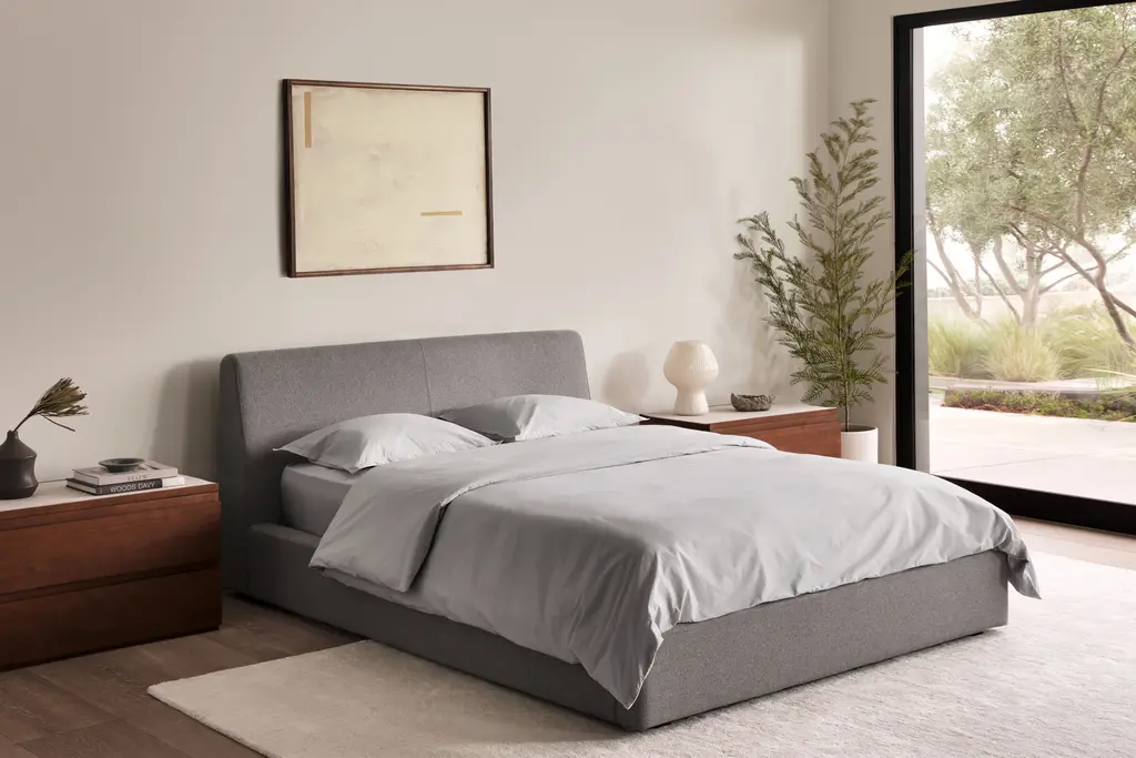 Inspired by that just-checked-in feeling, the Complete Cotton Percale Bedding Set is curated luxury for The Bedroom. Made of 100% Cotton with a premium, smooth texture that softens with every wash. The essential set to turn the Classic Bed into the perfect oasis. The Cotton Percale Full Set includes one fitted sheet, one flat sheet, one or two pillows and pillowcases (depending on size selection), two shams, one duvet cover, and one duvet.
