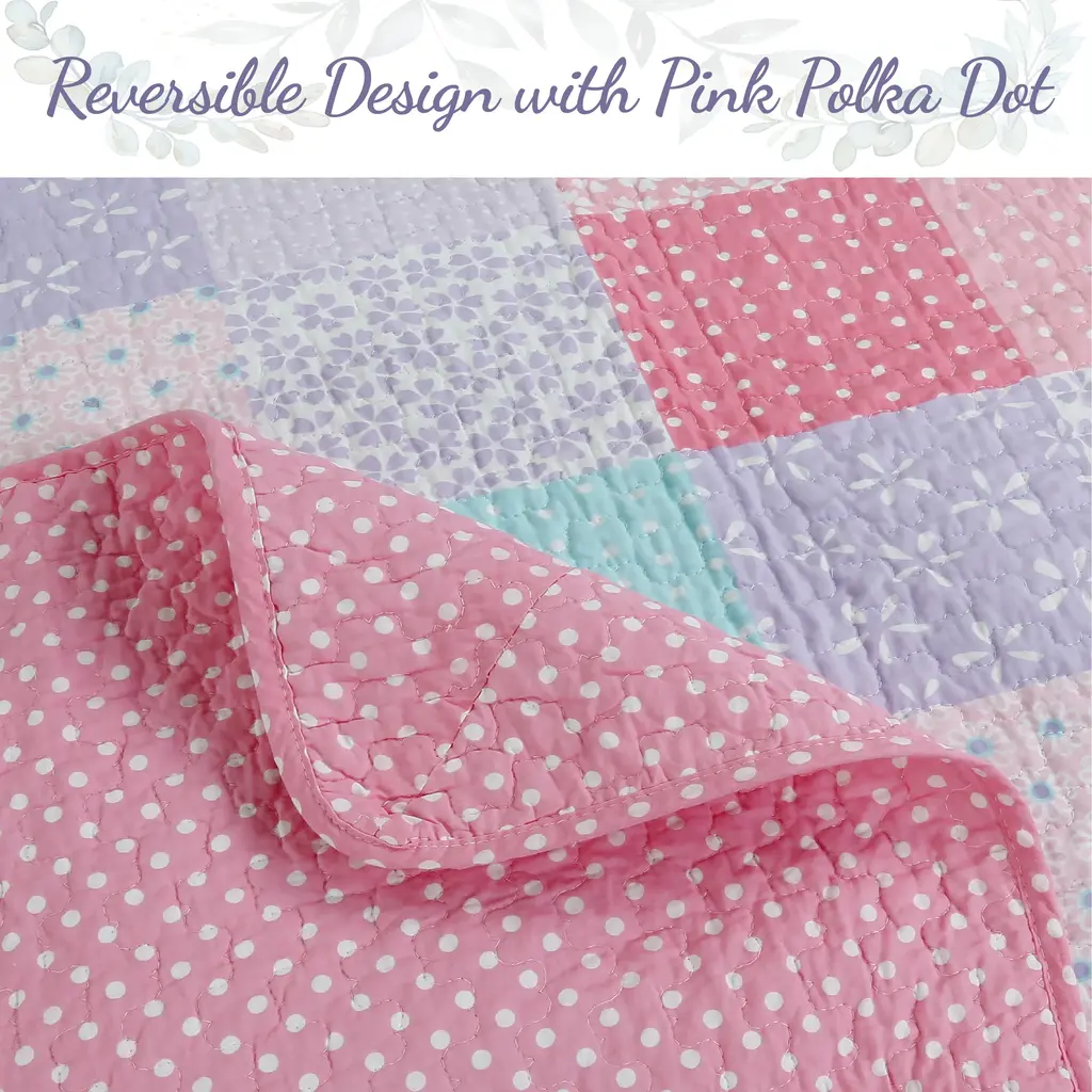 Cozy Line Angelina Floral Pink Patchwork Reversible Cotton Quilt Bedding Set - Twin