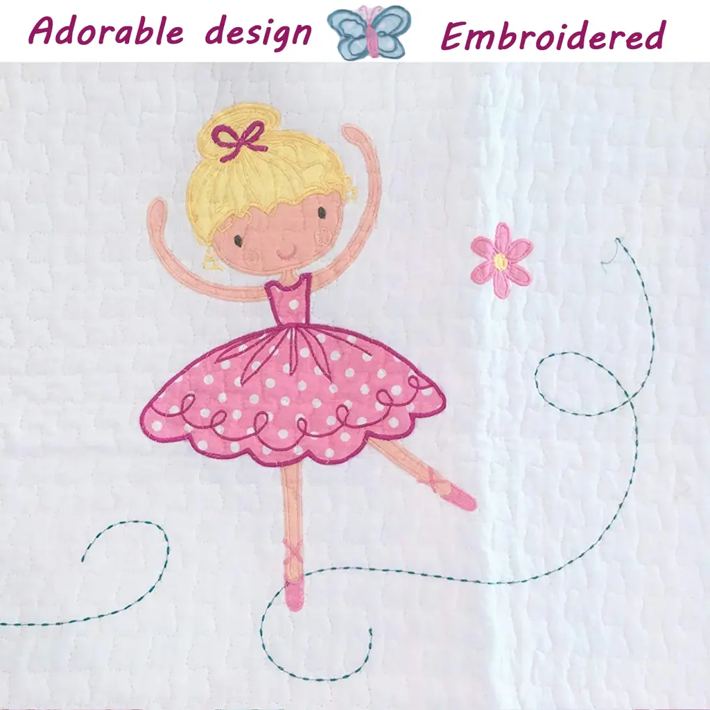 Cozy Line Ballerina Pink Girls Reversible Cotton Quilt Bedding Set With Decorative Pillows - Twin