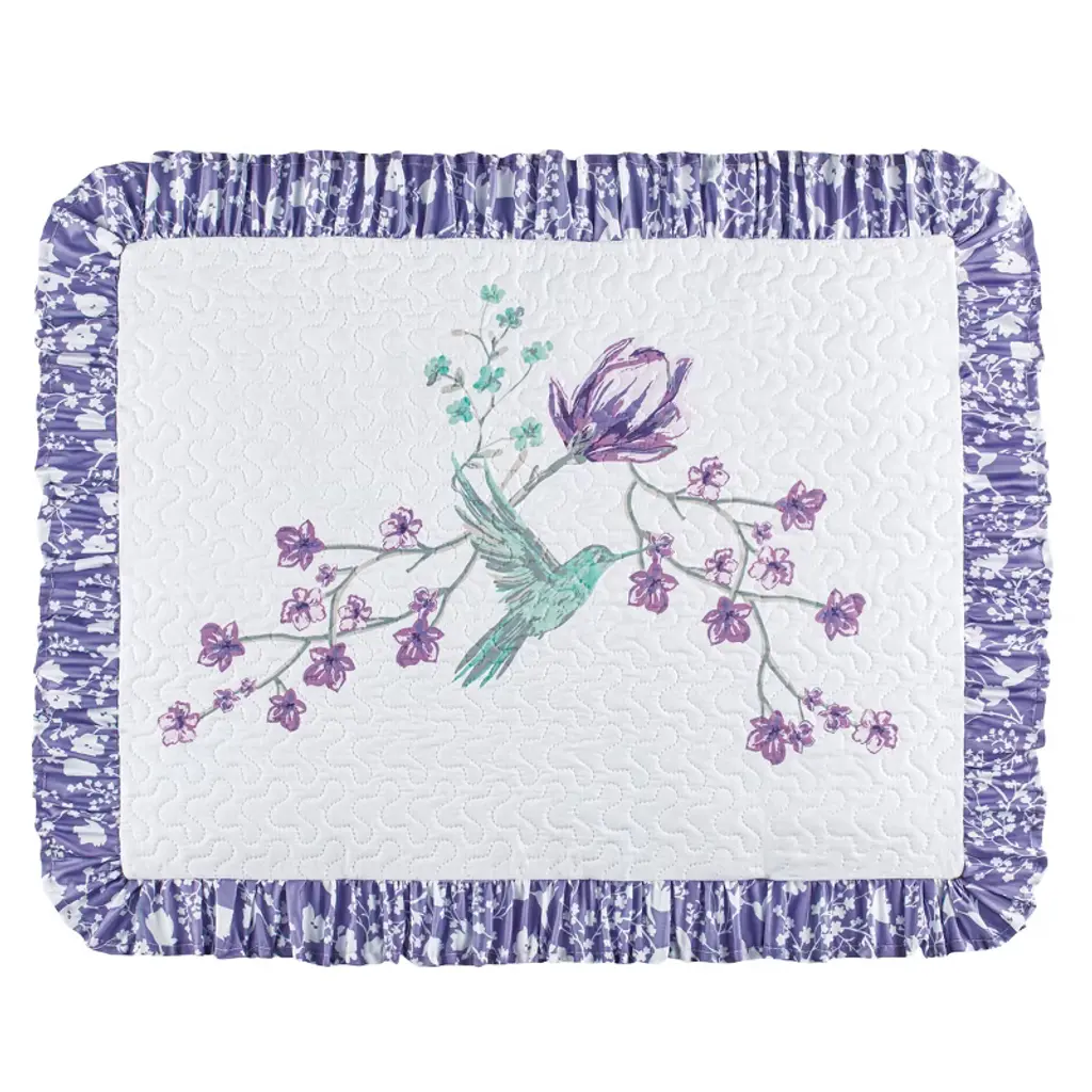 Bring a burst of vibrant color and designer style to your bedroom with this Cozy Line Lilac Purple Green Stripe Polka Dot Checker White Ruffle Patchwork Cotton Reversible Quilt Bedding Set. The captivating combination of lilac purple, pink, and green patterned fabrics in stripes, polka dots, and checker patterns, all quilted together in a stripe patchwork design, is stunning and fun. The quilt is adorned with several white designer ruffles that add a perfect finishing touch to the quilt. Made of 100% Cotton, this quilt set is easy to care for with its machine-washable material. Ideal for all-season use, the set is offered in Twin and Queen sizes and includes 1 quilt and 2 standard shams (1 sham for Twin).Features:Twin dimensions: · Quilt: 68 inches wide x 86 inches long· 1 Standard Sham: 20 inches wide x 26 inches longQueen dimensions: · Quilt: 88 inches wide x 92 inches long· 2 Standard Shams: 20 inches wide x 26 inches long