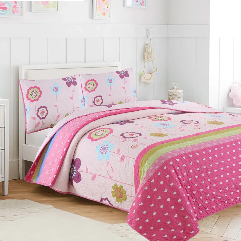 Cozy Line Pink Flower Garden Girl Quilt Bedding Set - Queen