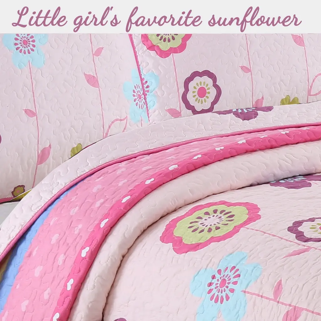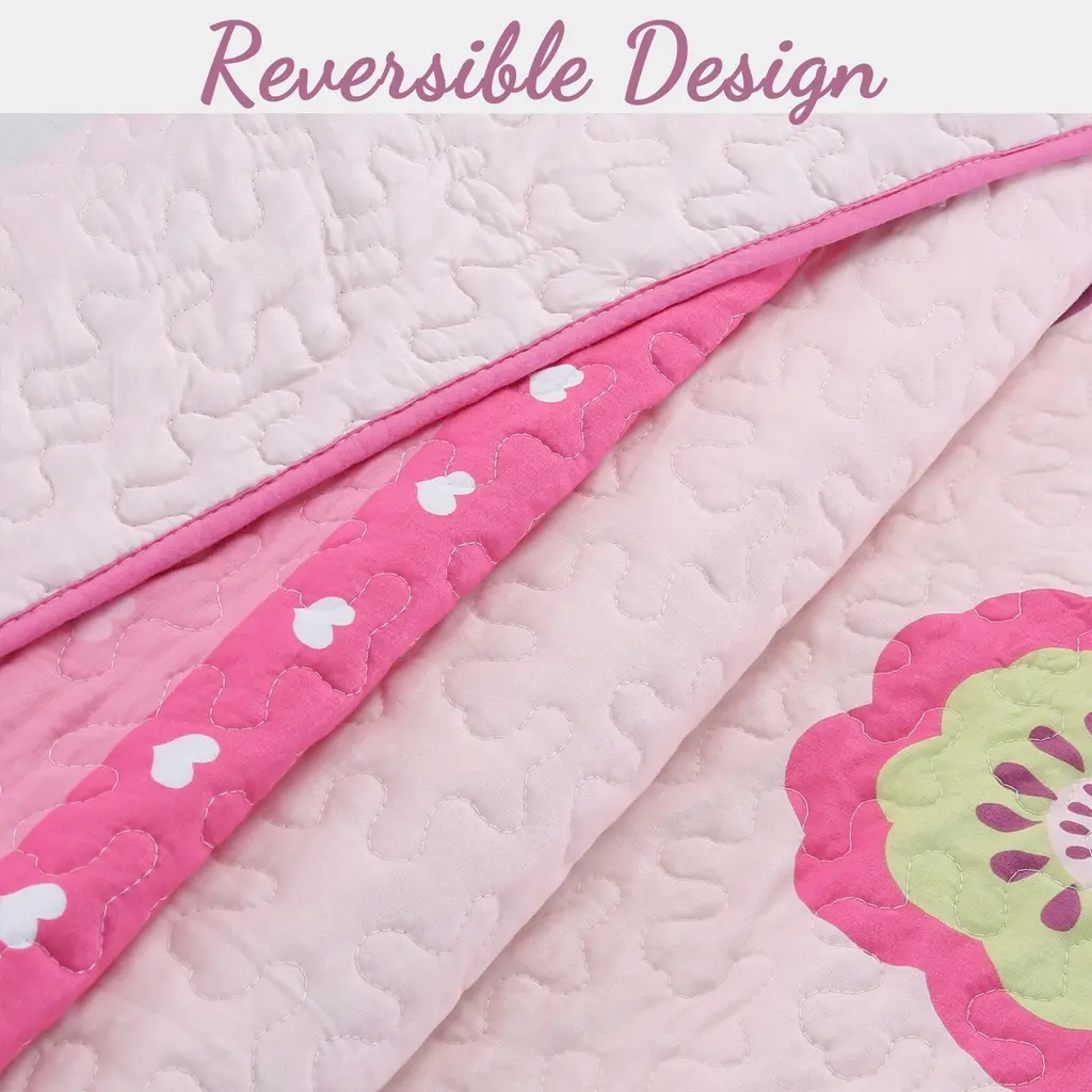 Cozy Line Pink Flower Garden Girl Quilt Bedding Set - Twin