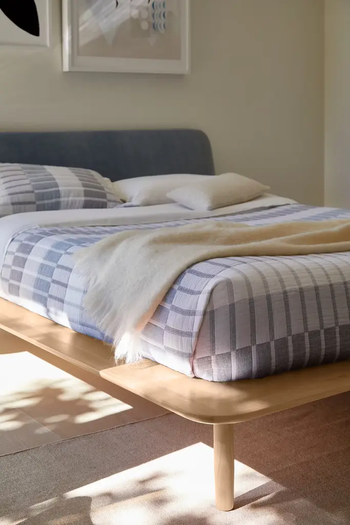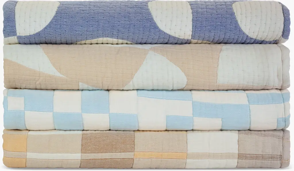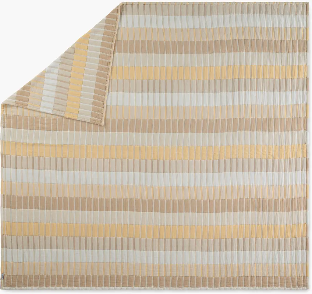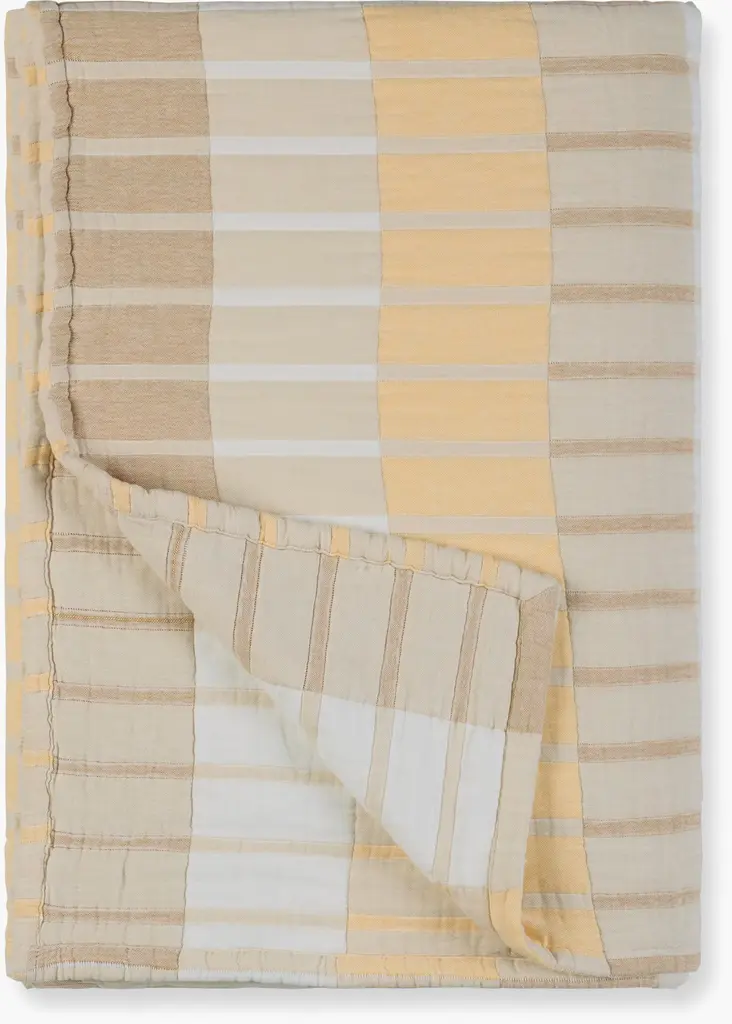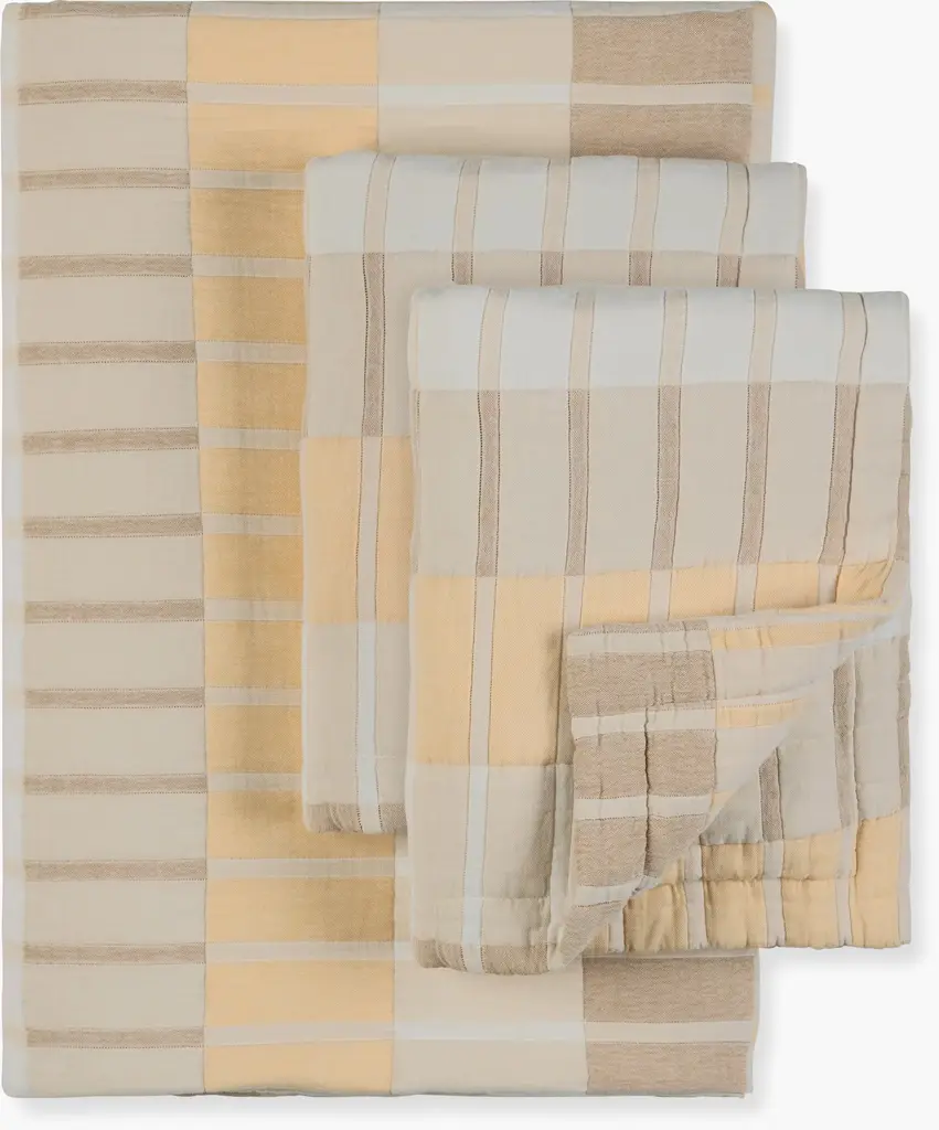 Dusen Dusen Band Bedding (2022) features the exquisite balance of proportion, line, and color that makes textile artist Ellen Van Dusen's work so popular. It's crafted from stonewashed cotton with a gauzy feel and soft polyester filling for a quilted effect. Twin set includes coverlet and sham, and queen and king sets each include coverlet and two shams. These pieces are reversible with the same design on both sides. Machine washable. Made in Portugal.