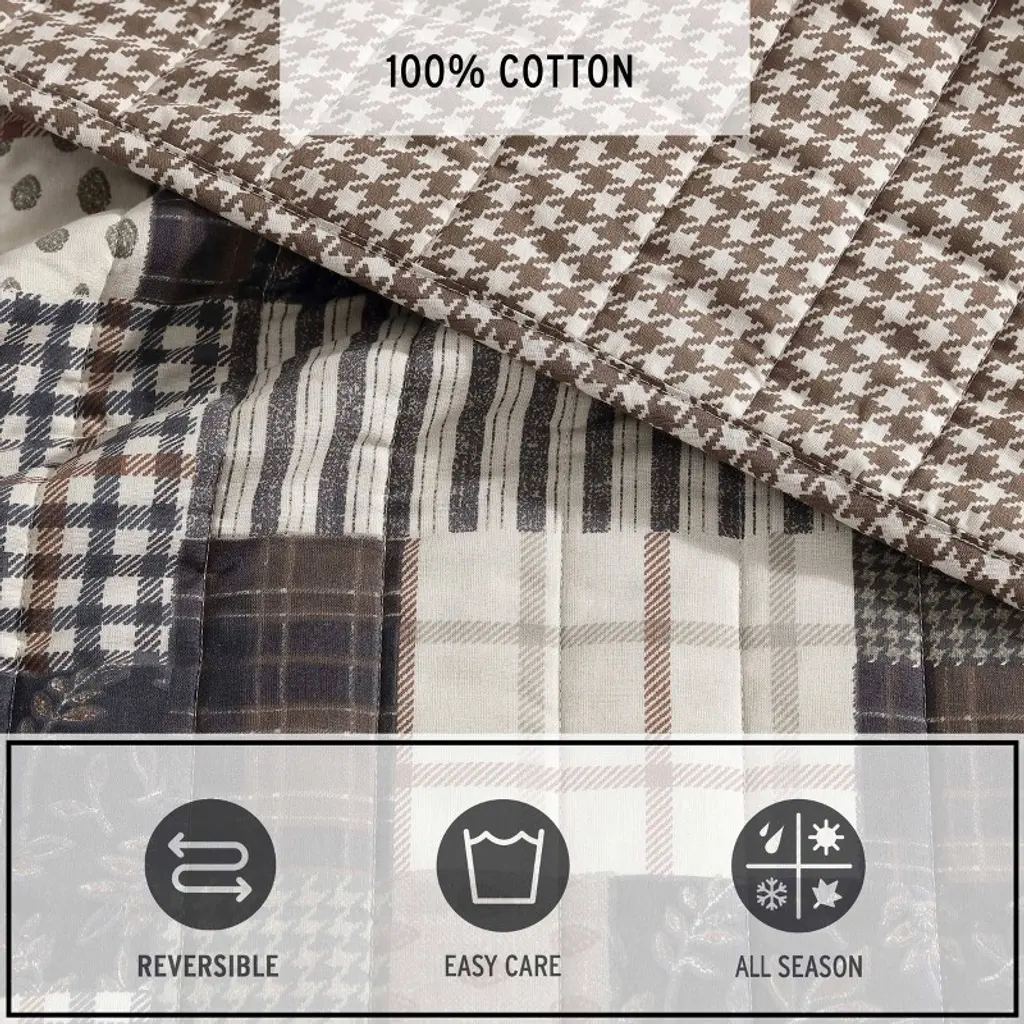 Eddie Bauer 3Pc Full/queen Antique Quilt Bedding Set Brown