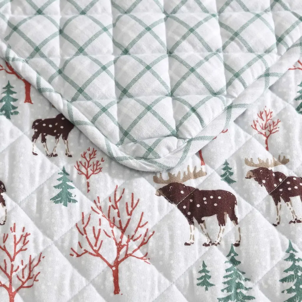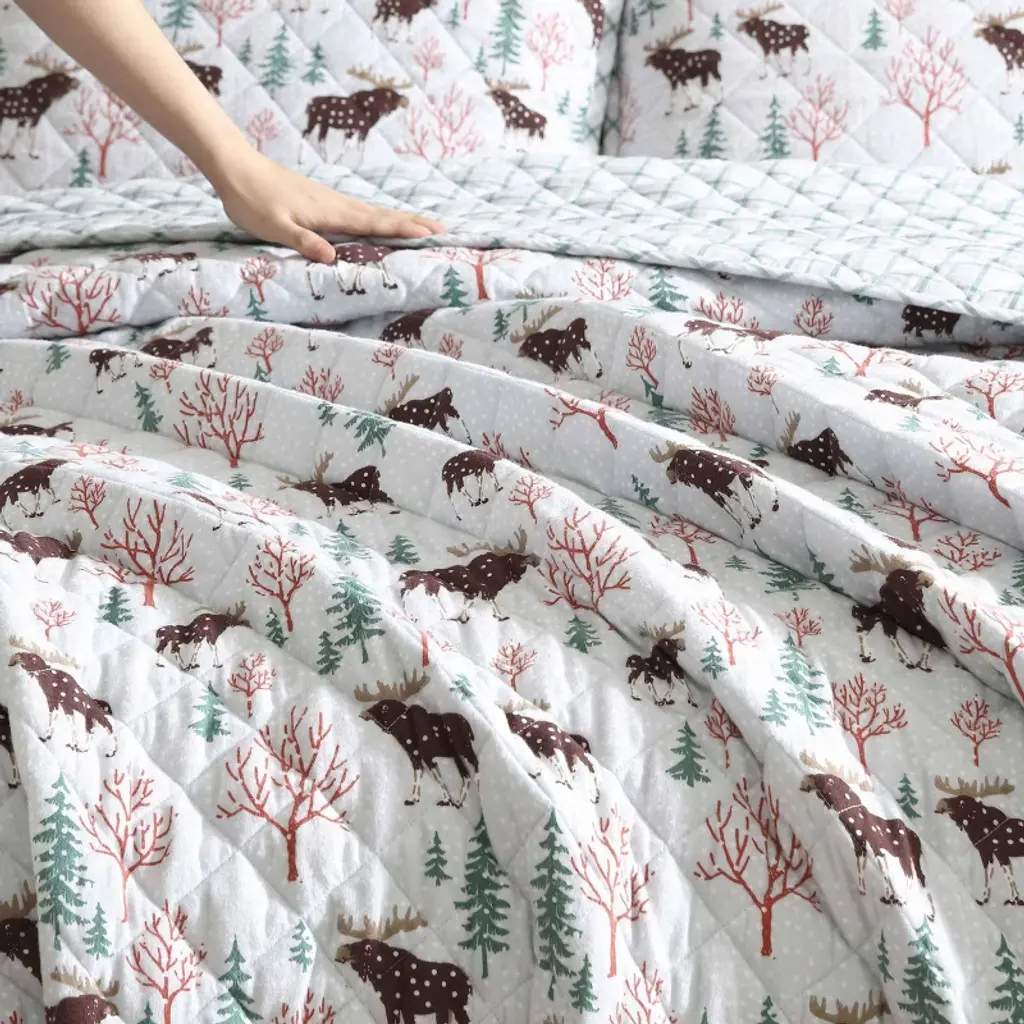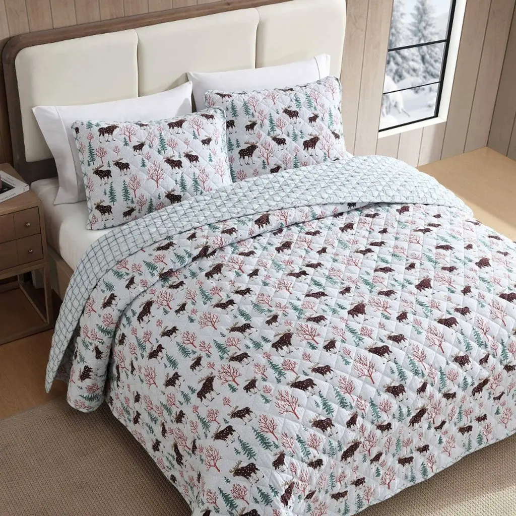 Eddie Bauer 3Pc Twin Mountain Moose Quilt Bedding Set Gray