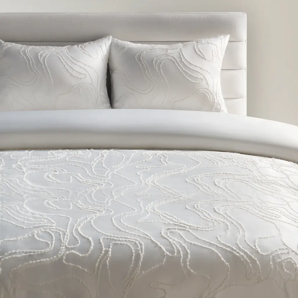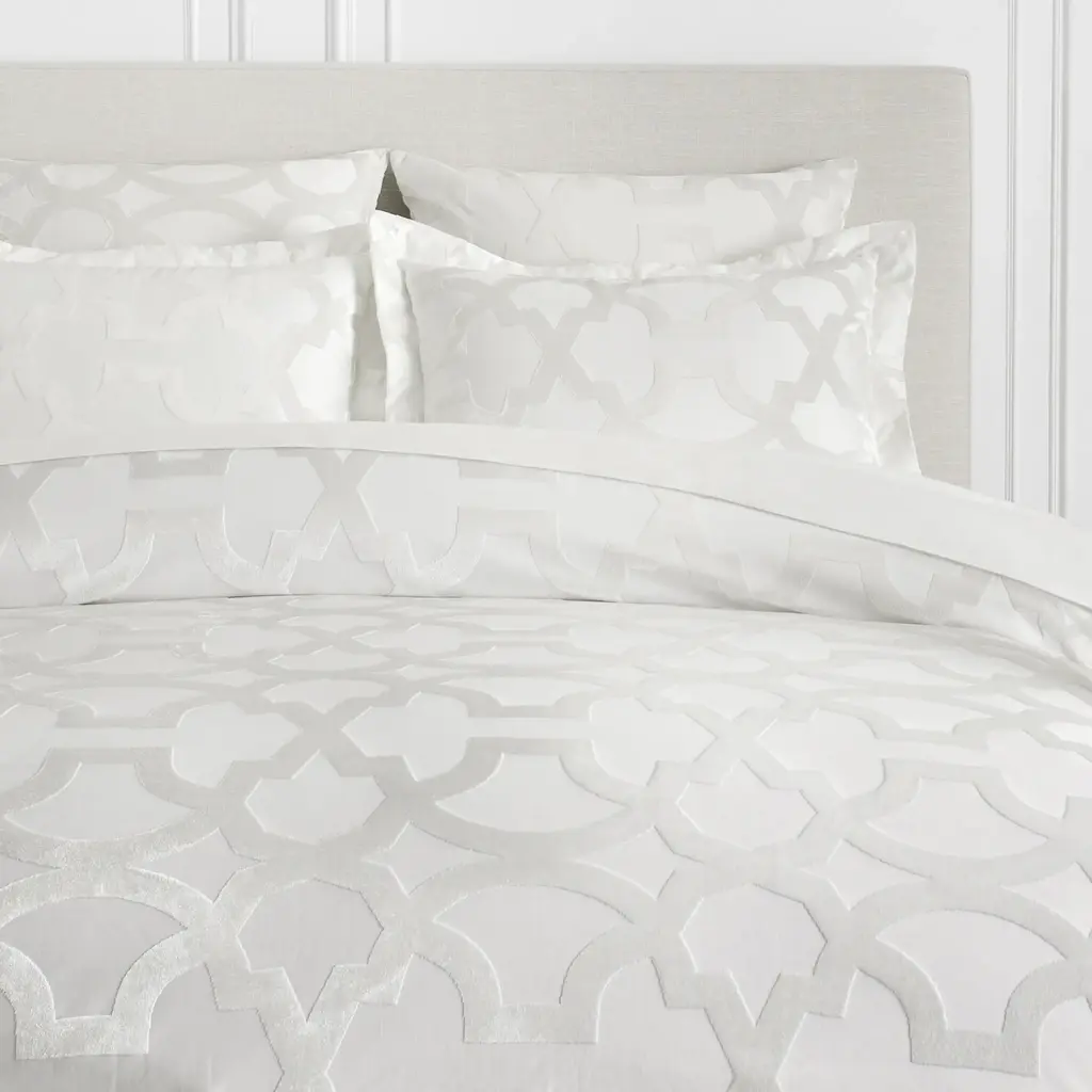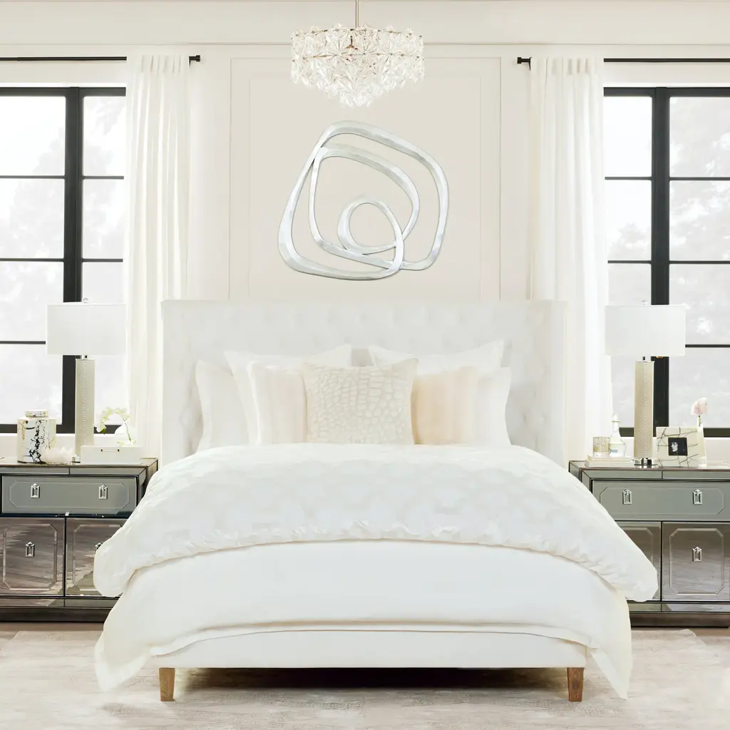 Looking for a crisp and clean look for your bedroom? Our Edessa Bedding takes that aesthetic to another level. A delicate velvet jacquard pattern with a bright backdrop is the perfect carefree combination for elevated style. Z Gallerie exclusive
