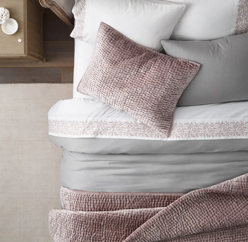 Garment-Washed Sateen & Embroidered Vine Organic Sateen Bedding Collection