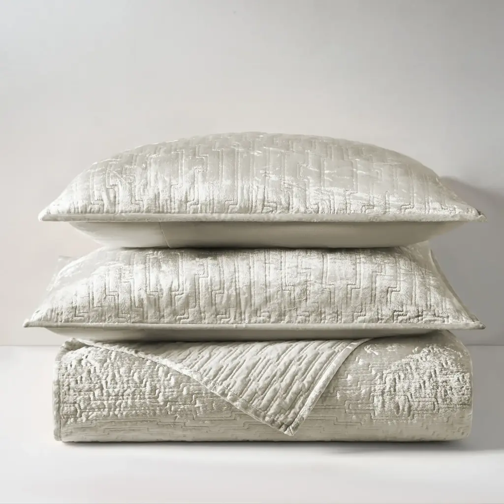 Transform your bedroom into a haven of luxury with the Glam Quilted Velvet Bedding Collection. We've elevated the standard quilt with a lustrous velvet detailed with modern quilted stitching and refined piped edges. Available in three stunning colors, each piece adds a touch of sophistication to your space. Create the ultimate cozy retreat and indulge in the comfort and style you deserve. Z Gallerie Exclusive