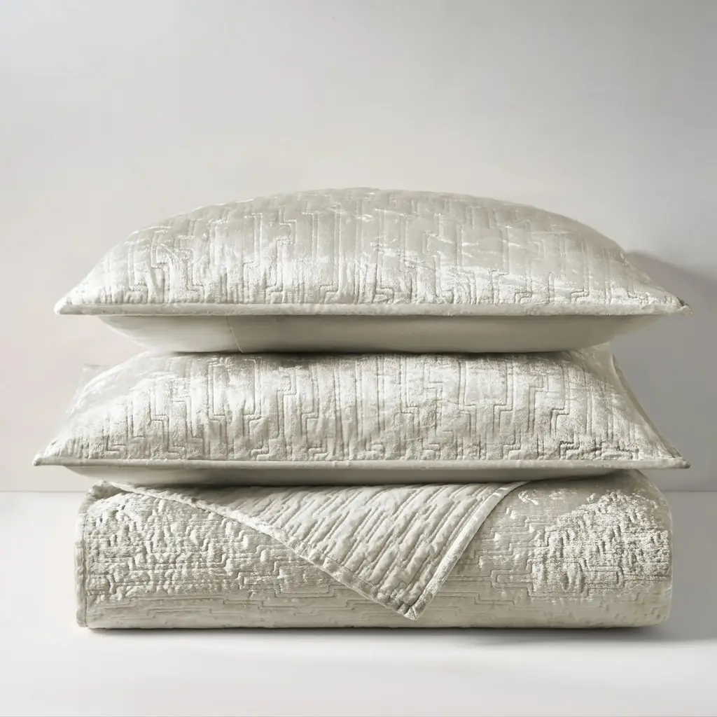 Transform your bedroom into a haven of luxury with the Glam Quilted Velvet Bedding Collection. We've elevated the standard quilt with a lustrous velvet detailed with modern quilted stitching and refined piped edges. Available in three stunning colors, each piece adds a touch of sophistication to your space. Create the ultimate cozy retreat and indulge in the comfort and style you deserve.Z Gallerie Exclusive