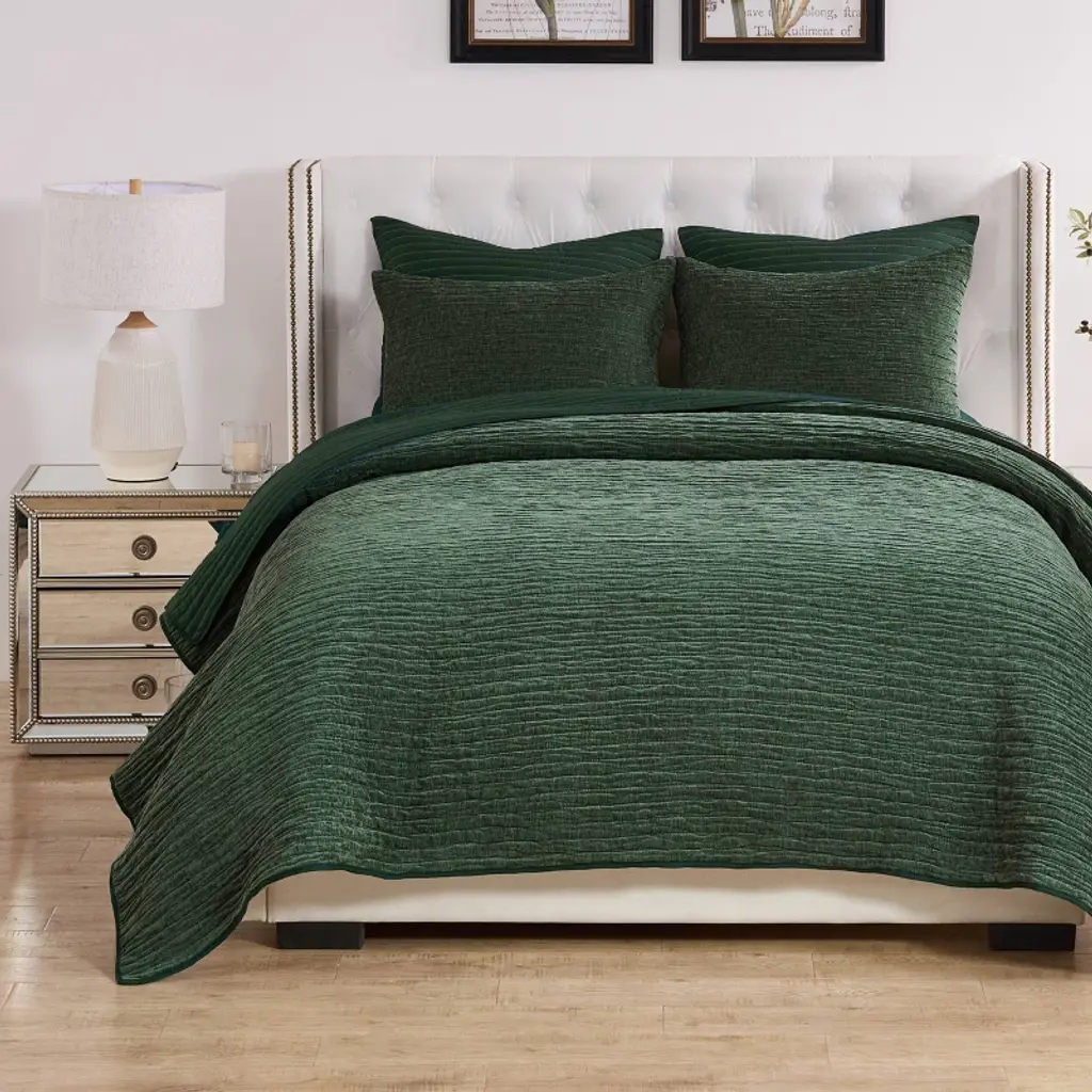 Greenland Home Fashions 3Pc Full/queen Velvet Crush Forest Quilt Bedding Set Green