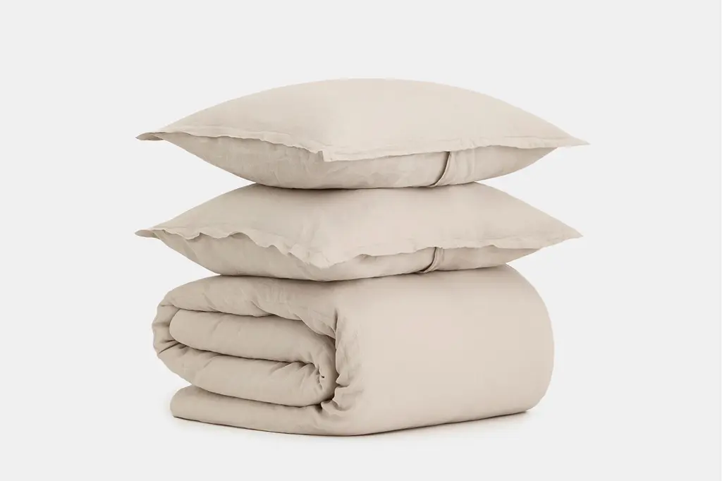 Everything needed for airy, effortless bedding. The Linen Complete Bedding Set is crafted from 100% European Flax Linen that is naturally breathable, durable, and thermoregulating. Subtle texture and elegant drape. Duvet and pillows made from hypoallergenic down alternative. Linen Complete Bedding Set includes one fitted sheet, one flat sheet, one or two pillows and pillowcases (depending on size selection), two shams, one duvet cover, and one duvet.
