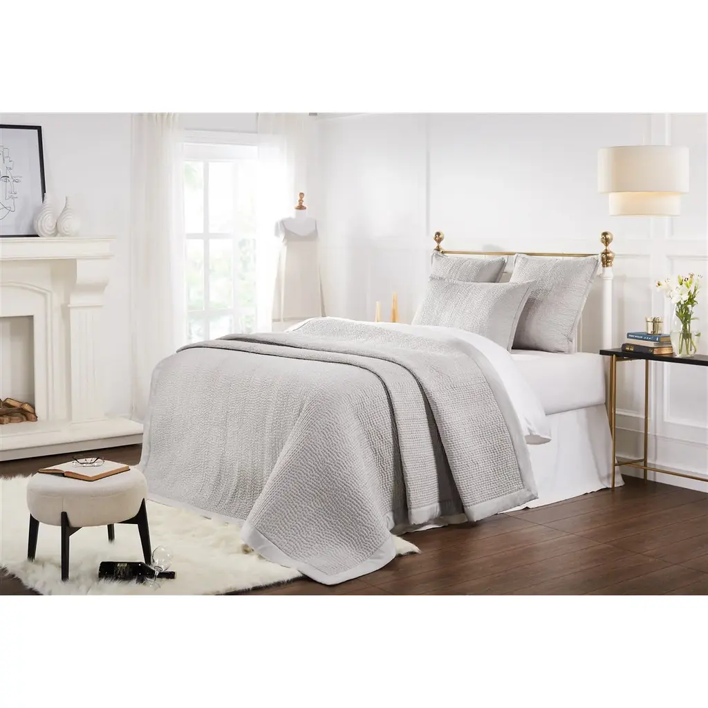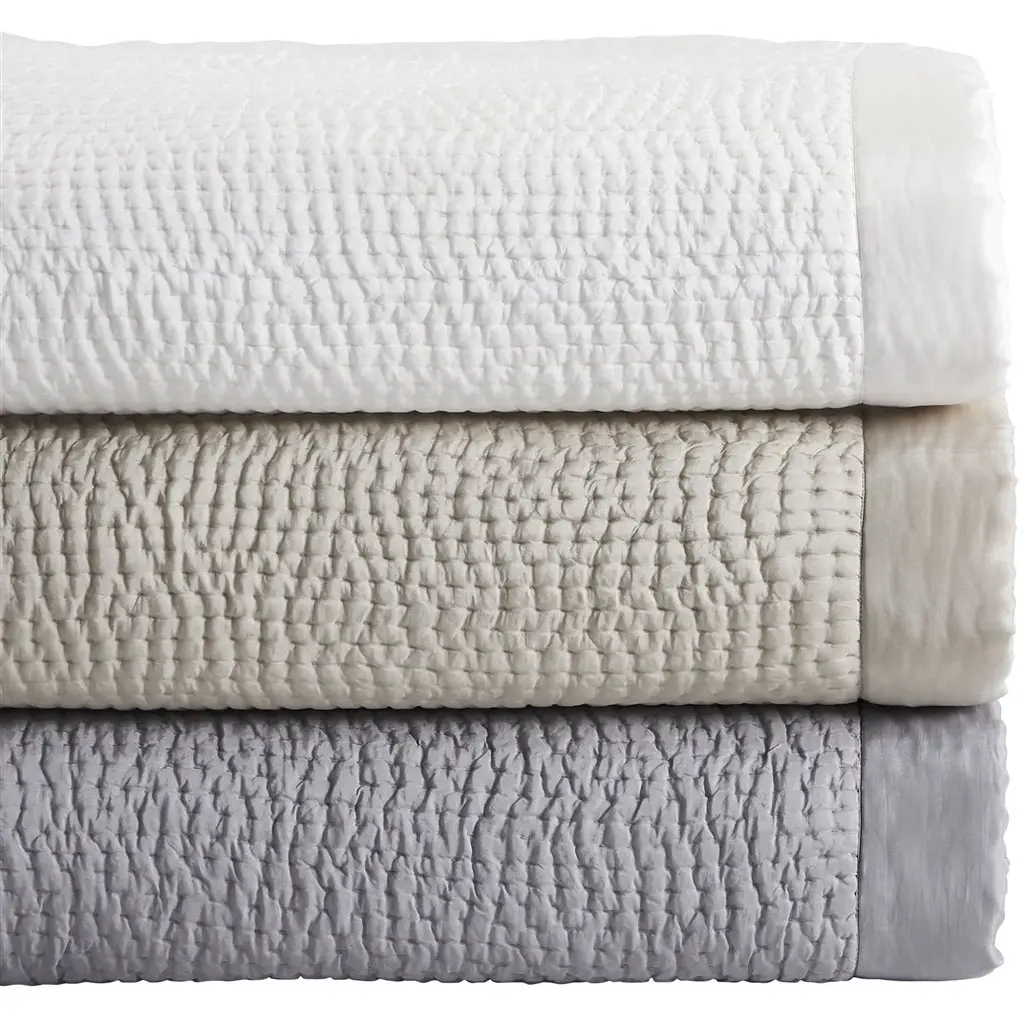 This divine bedding collection features an oh-so-soft channel-stitched silk coverlet and pillow shams. The Lucy collection collaborates beautifully with a spectrum of colors and designs for layering potential. Seriously luxurious! quilt size: (king) 110" wide x 96" long / (queen) 94" wide x 96" long standard sham, cover only: 26" wide x 20" high king sham, cover only: 36" wide x 20" high euro sham, cover only: 26" square 100% silk (front) 100% cotton (back & edging)