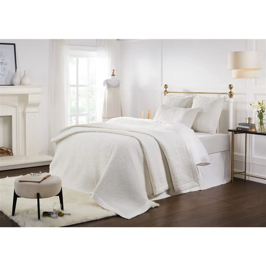 This divine bedding collection features an oh-so-soft channel-stitched silk coverlet and pillow shams. The Lucy collection collaborates beautifully with a spectrum of colors and designs for layering potential. Seriously luxurious! quilt size: (king) 110" wide x 96" long / (queen) 94" wide x 96" long standard sham, cover only: 26" wide x 20" high king sham, cover only: 36" wide x 20" high euro sham, cover only: 26" square 100% silk (front) 100% cotton (back & edging)