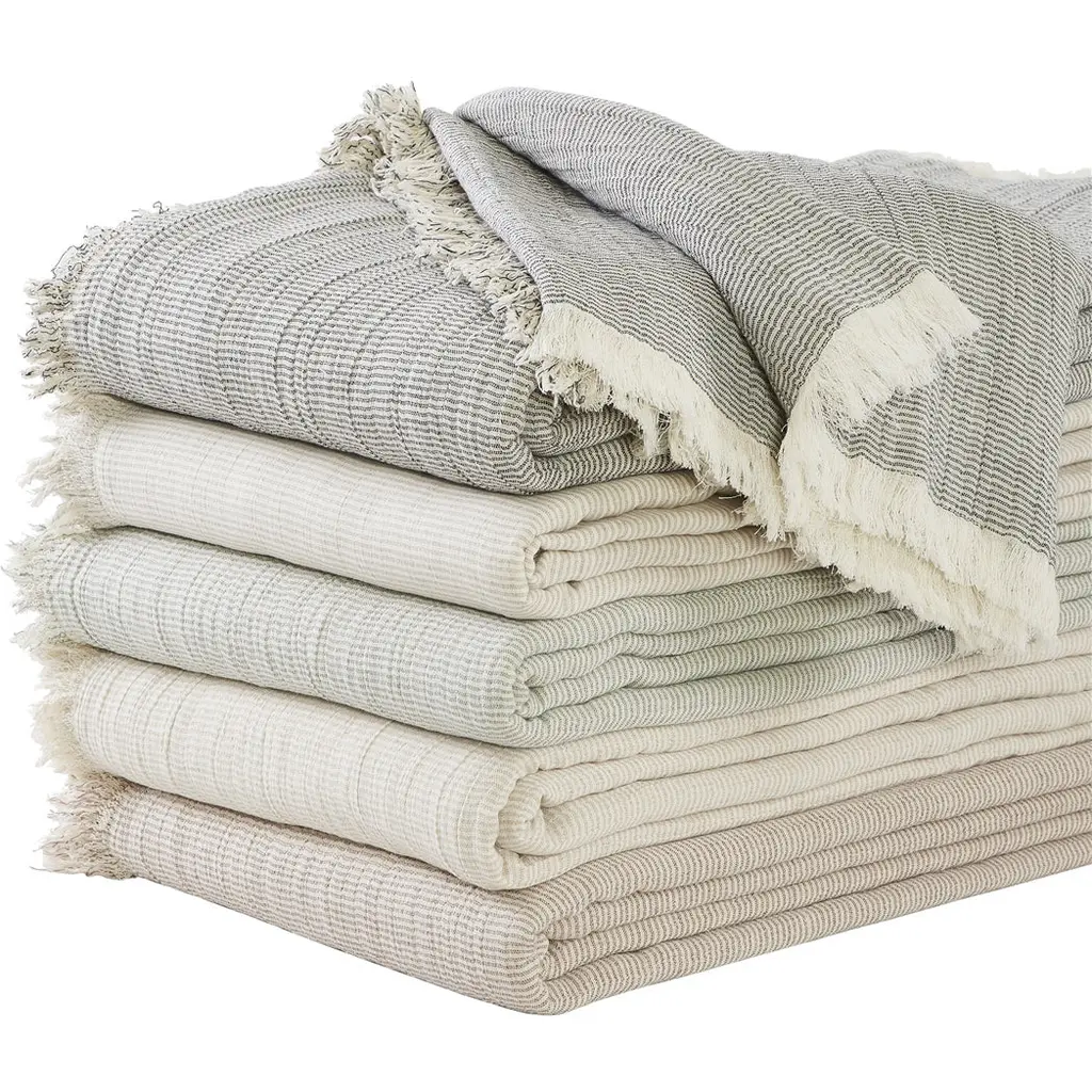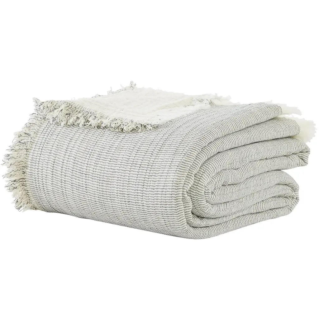As a lightweight coverlet or an added layer for cooler days, this cotton bed throw is offered in a neutral beige. Subtle thin woven stripes add texture to this dual-layer throw. Try this with crisp white linens or layered with brighter colors for a spirited update. Euro pillow shams and/or a deco pillow complete the ensemble. throw size: (king) 110" wide x 96" long / (queen) 94" wide x 96" long euro sham, cover only: 26" square deco pillow + poly insert: 26" wide x 14" high 100% cotton