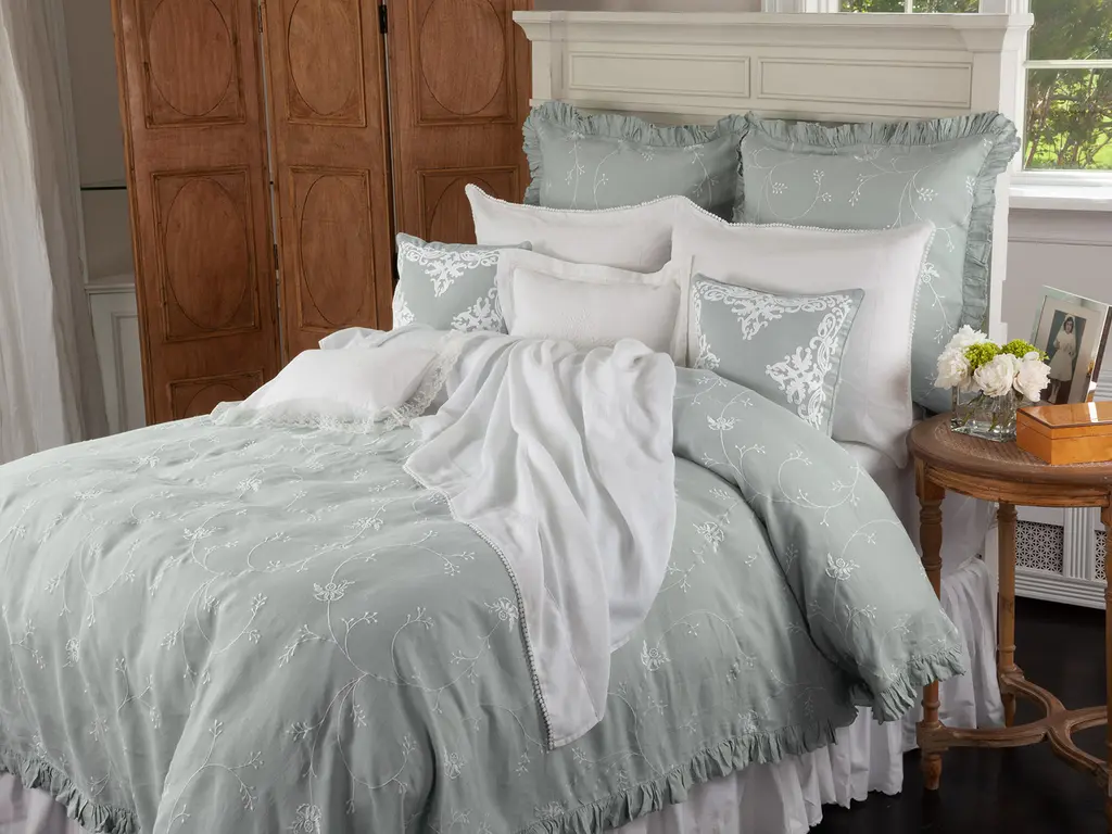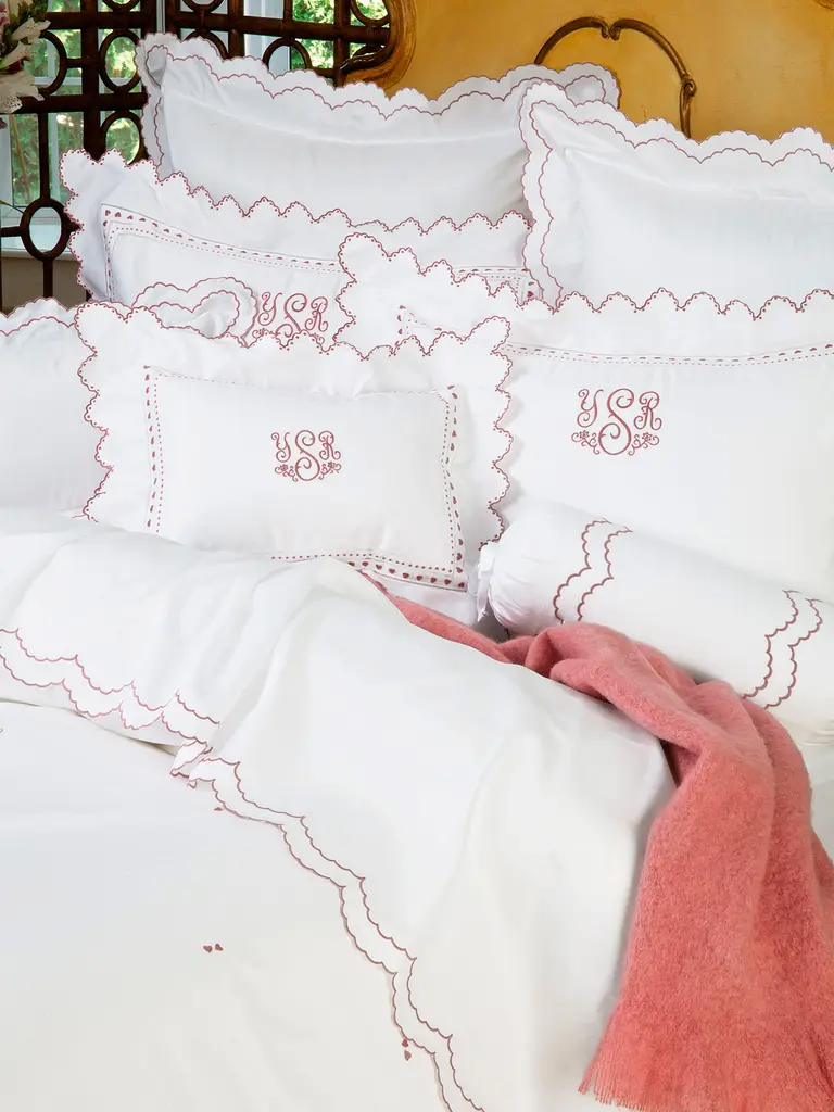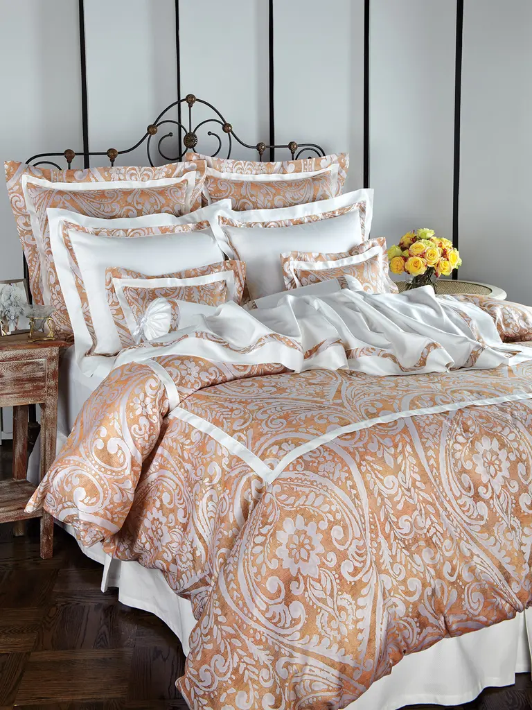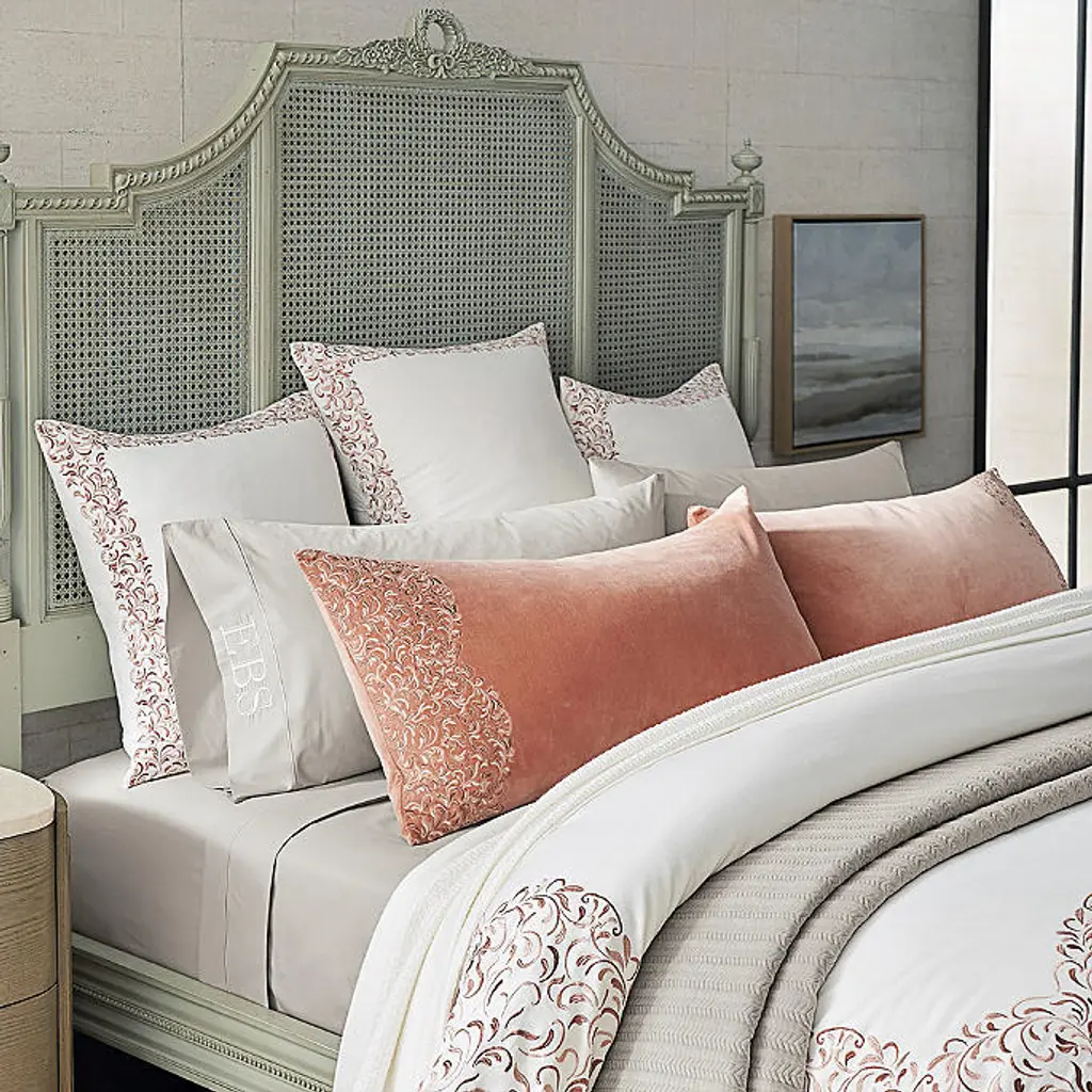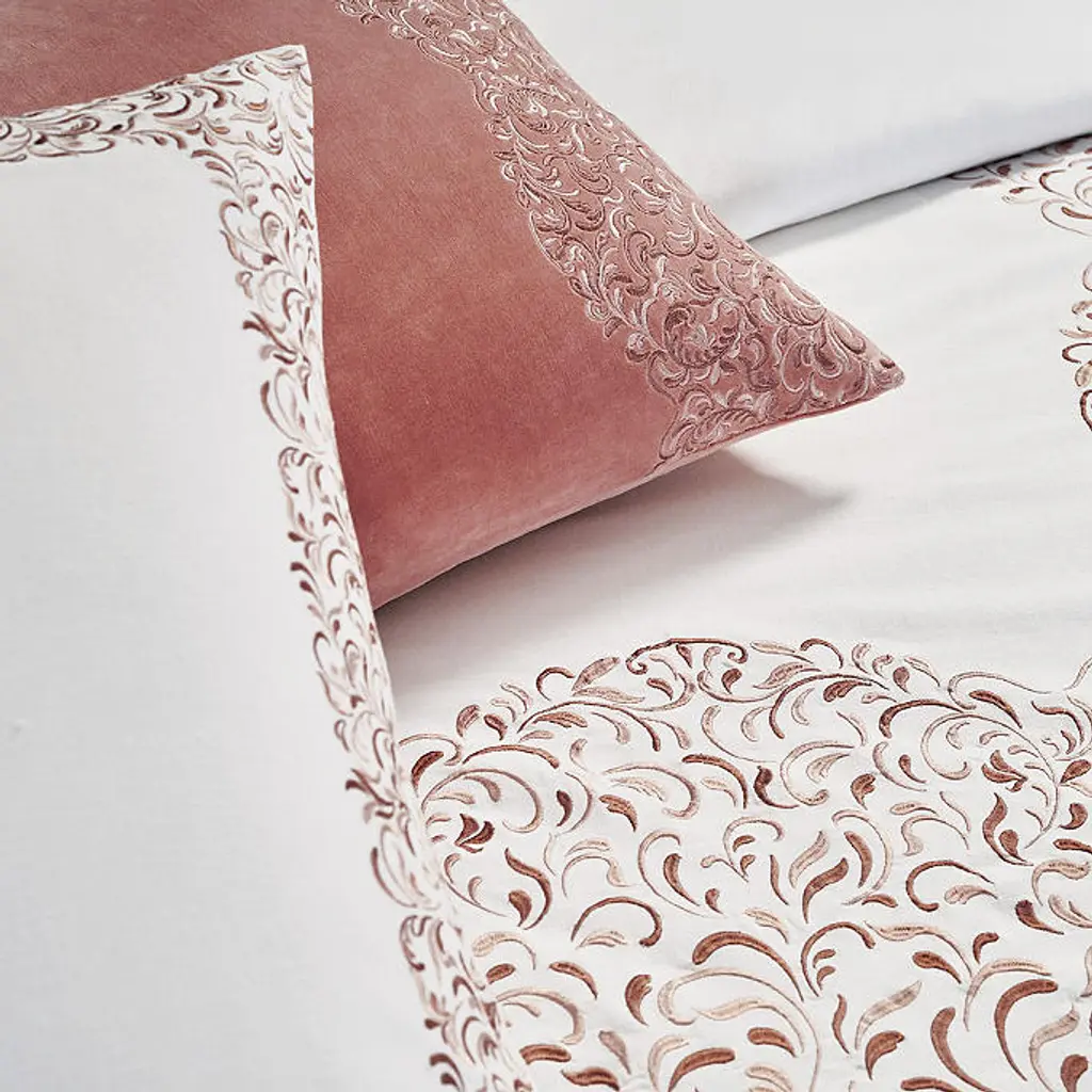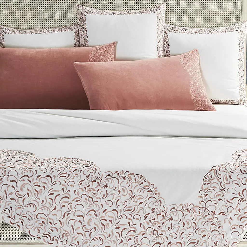 Delicately embroidered contemporary swirls, scalloped borders and warm clay tones create a space of effortless warmth and interest. The ultra-soft cotton/linen Duvet Cover and velvet Shams offer an inviting sanctuary after a long day. Clean knife-edge finish Machine wash cold; tumble dry low Do not use bleach Imported Duvet Cover: 85% cotton, 15% linen Hidden button closure Corner ties keep the duvet firmly in place Shams: Euro Sham is 85% cotton, 15% linen King and Standard Sham are 100% cotton velvet Envelope closure Sold individually A Frontgate exclusive. At Frontgate, our primary focus is quality. We guarantee that every product we sell will stand up to the supreme test – our customers' satisfaction. To learn more about our policies, visit our Shipping & Processing, Returns & Exchanges and Warranty & Price Guarantee pages. Delicately embroidered contemporary swirls, scalloped borders and warm clay tones create a space of effortless warmth and interest. The ultra-soft cotton/linen Duvet Cover and velvet Shams offer an inviting sanctuary after a long day. Clean knife-edge finish Machine wash cold; tumble dry low Do not use bleach Imported Duvet Cover: 85% cotton, 15% linen Hidden button closure Corner ties keep the duvet firmly in place Shams: Euro Sham is 85% cotton, 15% linen King and Standard Sham are 100% cotton velvet Envelope closure Sold individually A Frontgate exclusive. At Frontgate, our primary focus is quality. We guarantee that every product we sell will stand up to the supreme test – our customers' satisfaction. To learn more about our policies, visit our Shipping & Processing, Returns & Exchanges and Warranty & Price Guarantee pages.