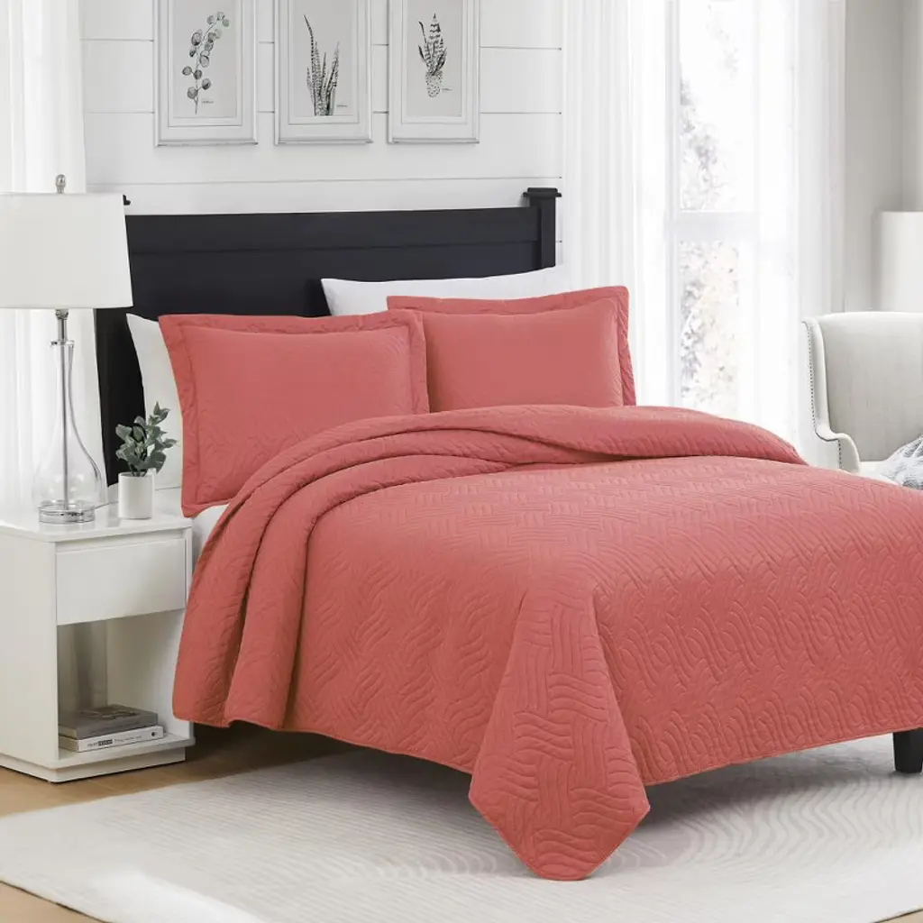 Rt Designers Collection Ruby 3 Pieces Pinsonic Lightweight Quilts Set King Size For Bedding Coral