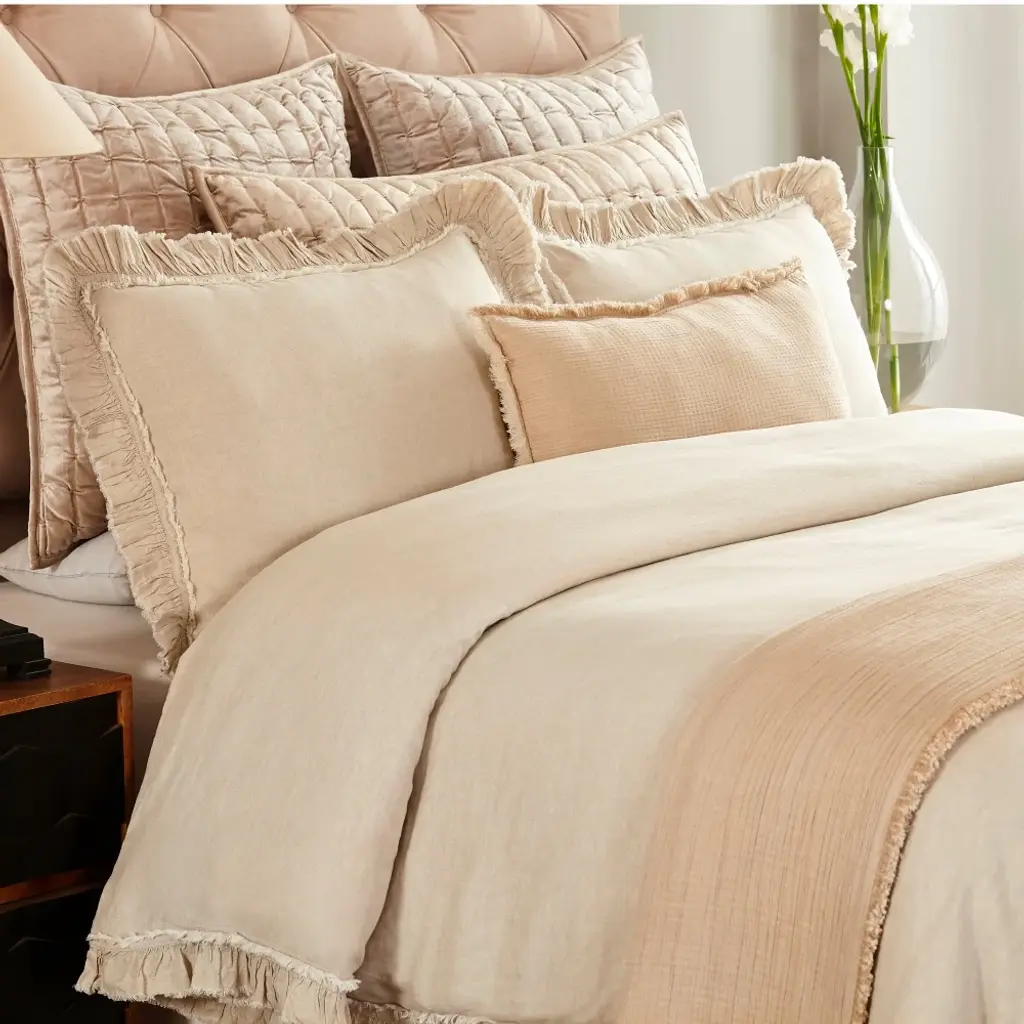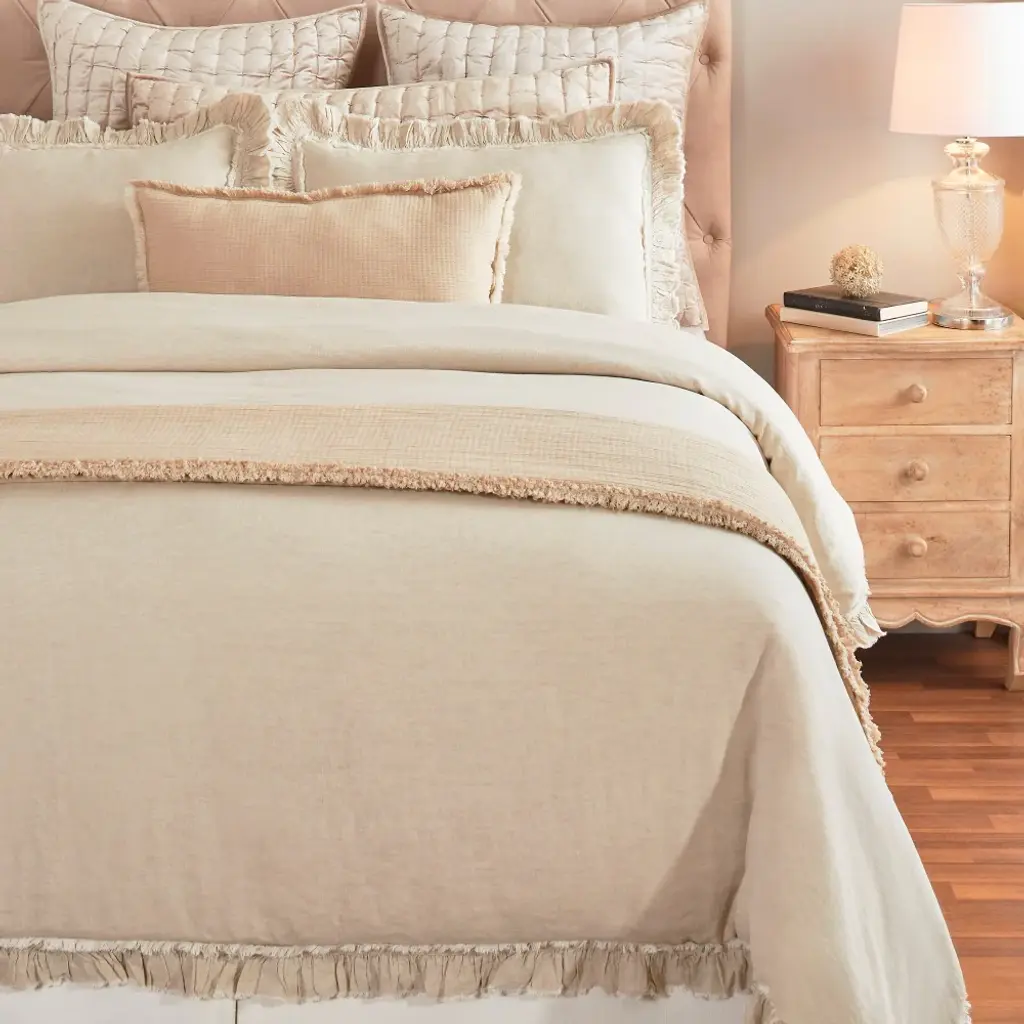 Rest and rejuvenate as you experience the comfort of European linen sheet sets. Offered in crisp white and bordered in soft beige, adding versatility and a dreamy vibe. Woven from the world's finest European flax linen, the Seville collection is pre-washed for incredible softness. Light textured and cool to the touch, this natural-fiber is prized for its durability, breathability and everyday ease.