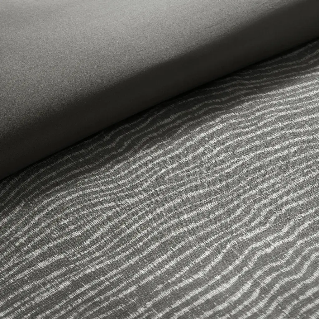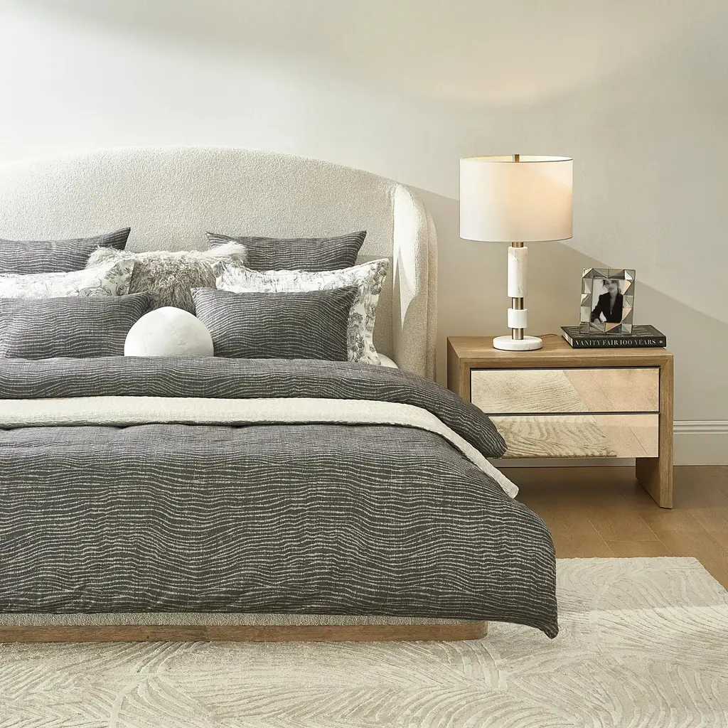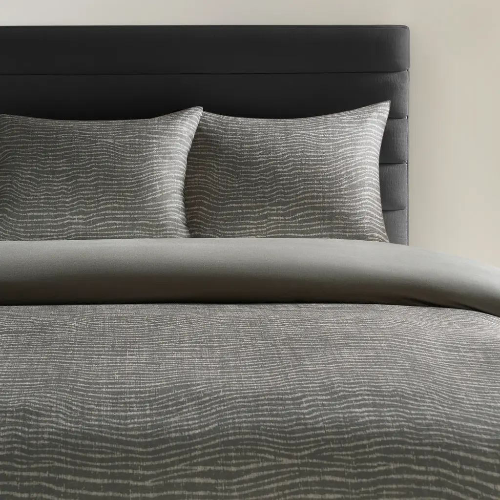 Discover serene elegance with the Sahara Bedding Collection, featuring a subtle wave-inspired zebra print in calming charcoal tones. The soft jacquard fabric and refined knife-edge detail bring modern sophistication, while a button closure on the duvet and envelope shams add ease. Each set includes a duvet cover and two shams, with Euro shams sold separately for a complete look. Let Sahara transform your space with understated beauty.Z Gallerie Exclusive