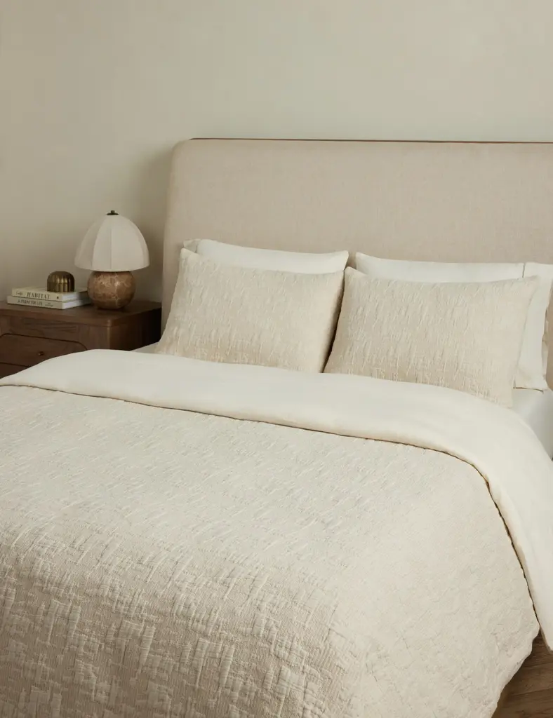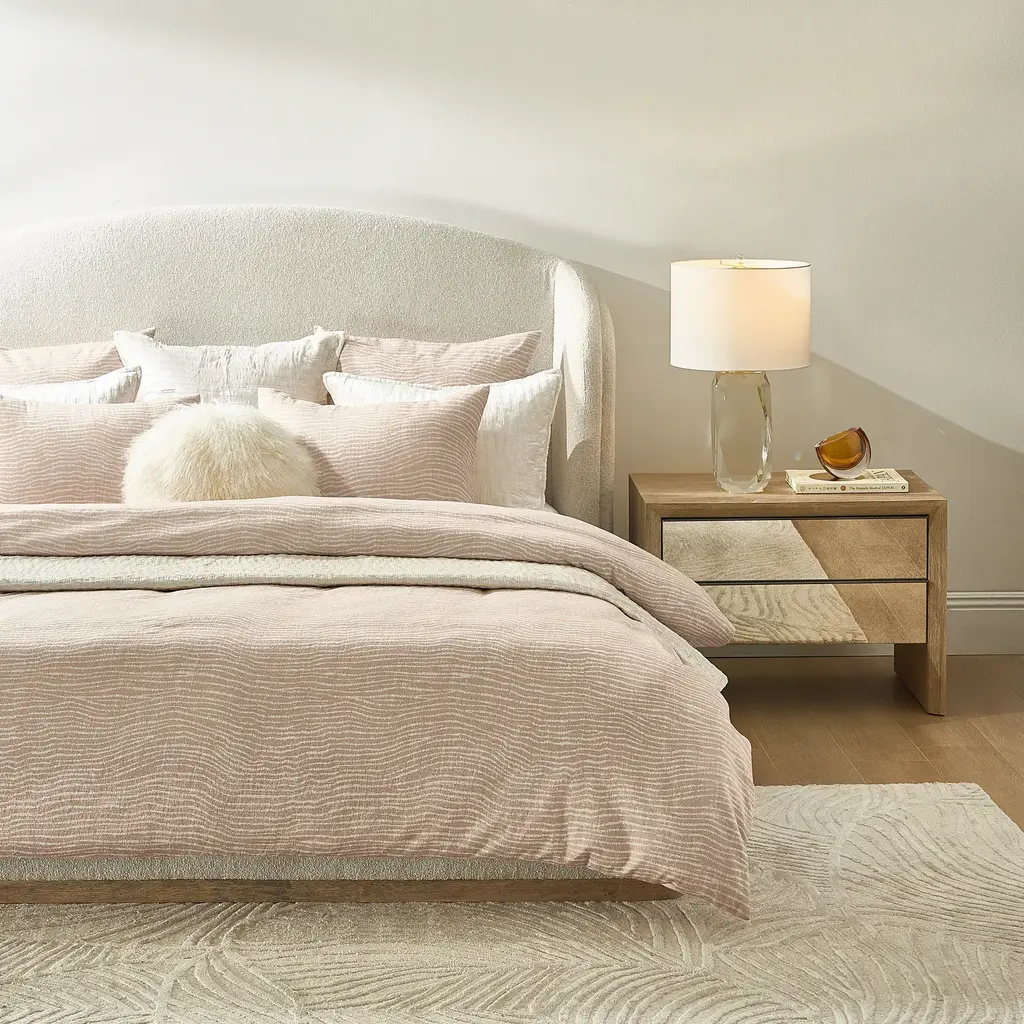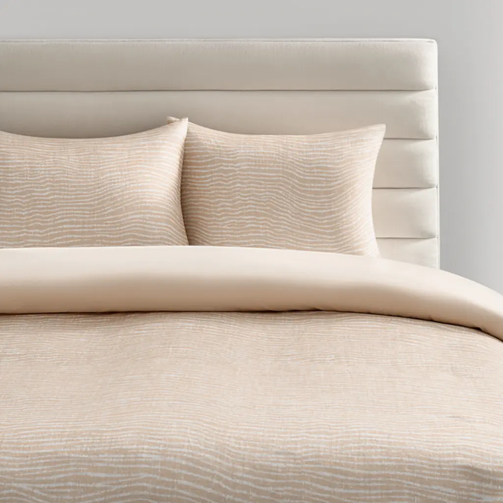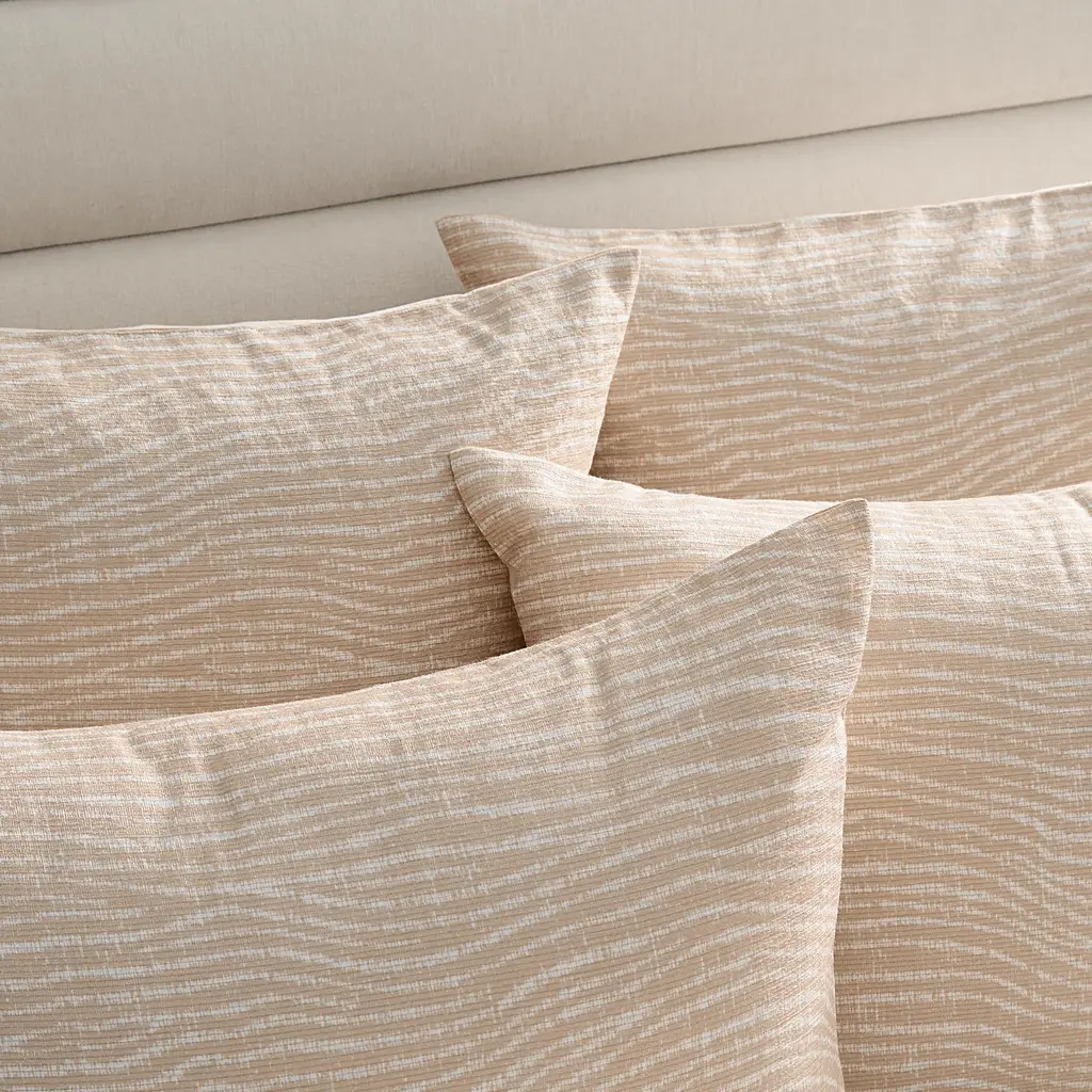 Discover serene elegance with the Sahara Bedding Collection, featuring a subtle wave-inspired zebra print in calming natural tones. The soft jacquard fabric and refined knife-edge detail bring modern sophistication, while a button closure on the duvet and envelope shams add ease. Each set includes a duvet cover and two shams, with Euro shams sold separately for a complete look. Let Sahara transform your space with understated beauty. Z Gallerie exclusive