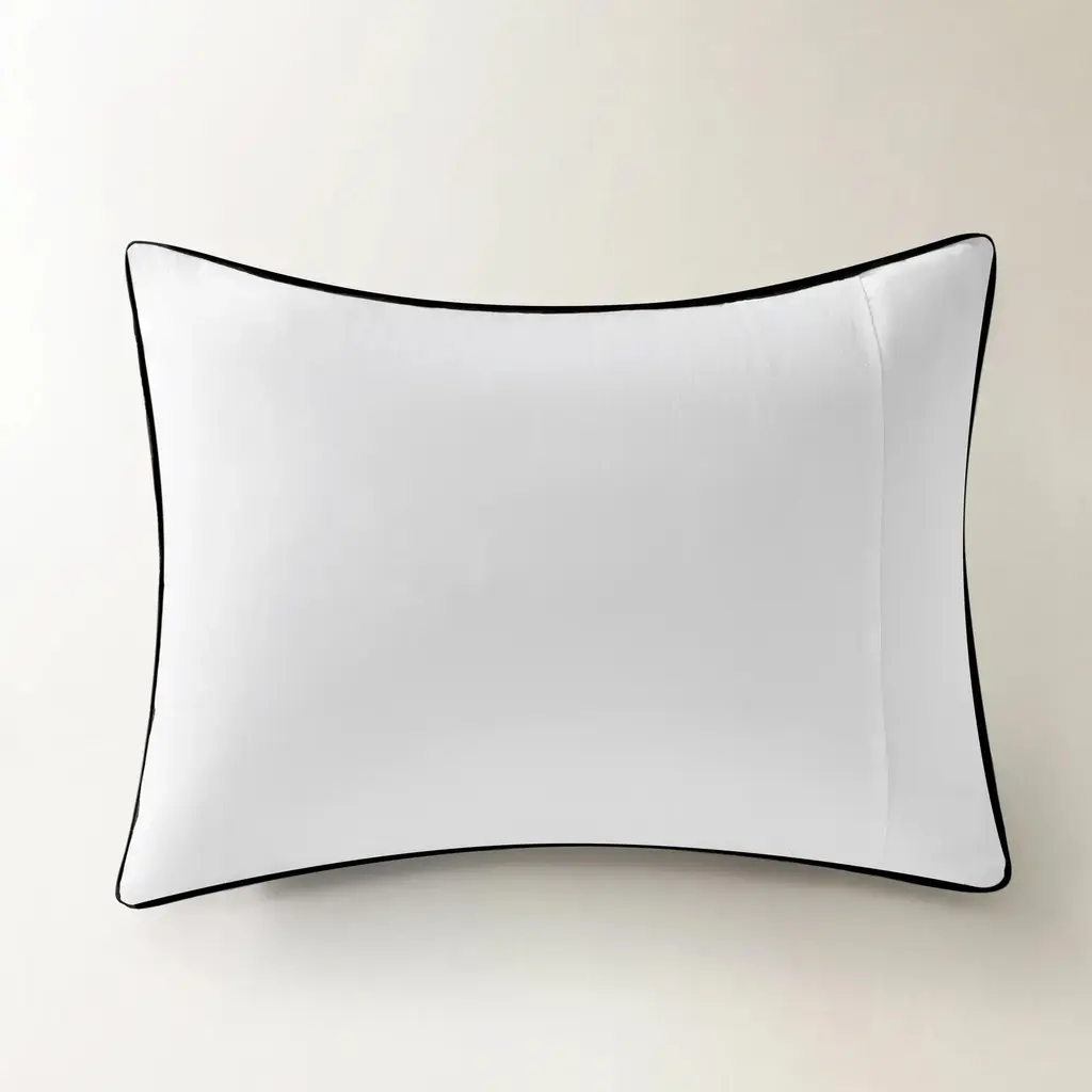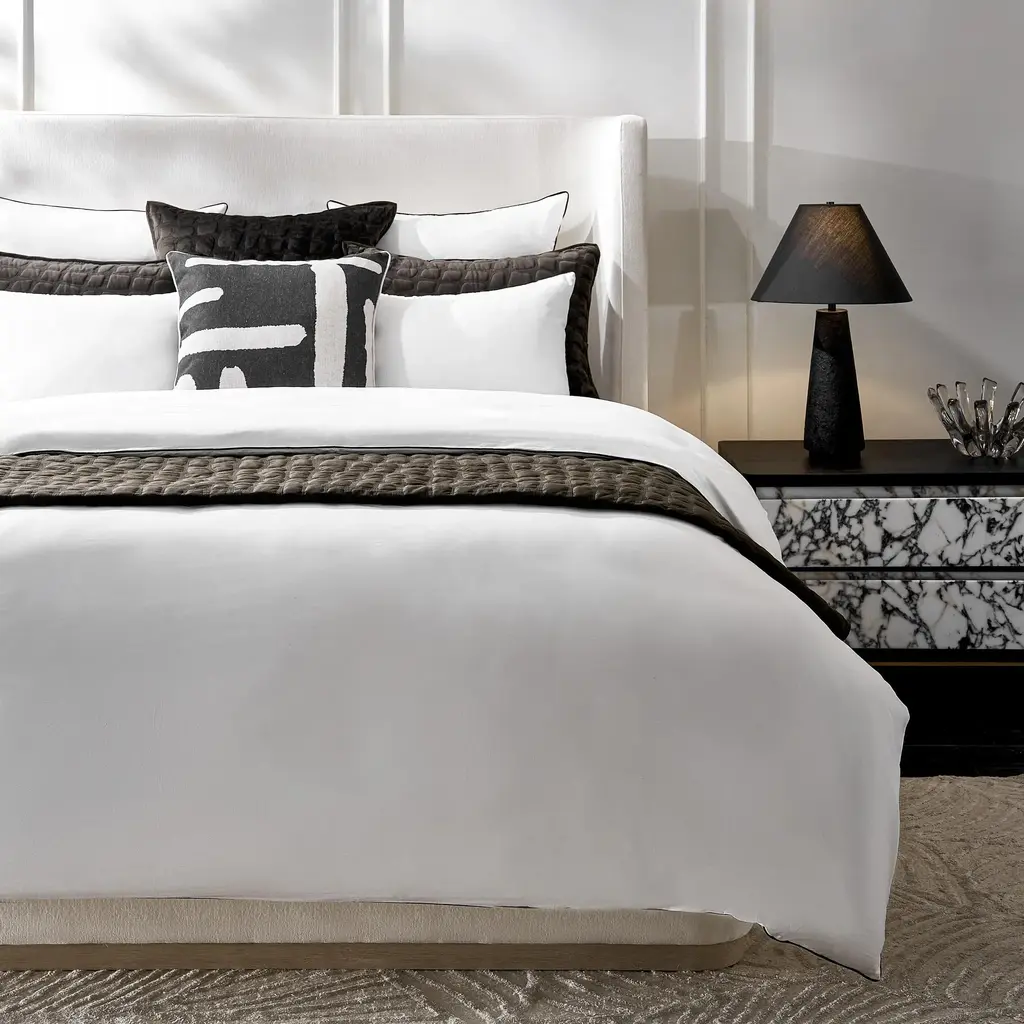 Clean, crisp, and effortlessly elevated. The Sarla Duvet Bedding Set pairs the breathable comfort of 100% cotton percale with tailored black piping for a refined modern edge. The fresh white base feels cool and timeless, while the graphic trim adds just the right amount of contrast. Ideal for minimalist bedrooms or layered bedding looks, this set is a study in understated sophistication.ZG Exclusive