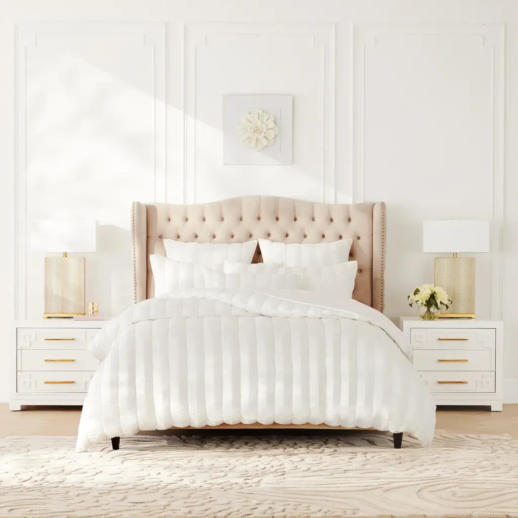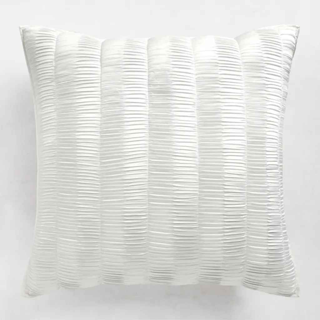 Our Savion Bedding Collection is designed with a satiny, micro-pleated polyester top, complemented by a cotton backing to create gorgeous, light-catching bedding that still breathes like a dream. Each piece is guided by hand through a sewing machine for that truly tailored touch (that's so hard to find these days). Coordinate with other Pearl bedding like Edessa for a mix and match that is crisp and clean. Z Gallerie exclusive