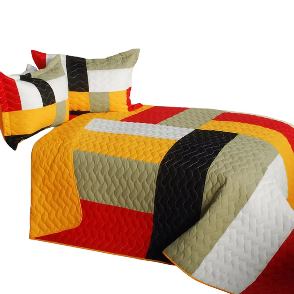 Upgrade your bedroom with the 3-Piece Vermicelli-Quilted Patchwork Quilt Set, designed to add warmth, charm, and style to any room. This set includes one quilt and two quilted shams, featuring detailed vermicelli stitching that enhances texture and comfort. Handmade with slight variations for a one-of-a-kind look, this set brings personality to both main bedrooms and guest spaces. With six different design options to choose from, it's easy to match your quilt to your personal style or room theme. Pre-washed, pre-shrunk, and machine washable, this quilt set offers easy care and long-lasting comfort. Whether you're refreshing your space or giving it as a thoughtful gift, this quilt set helps create a cozy and inviting atmosphere.