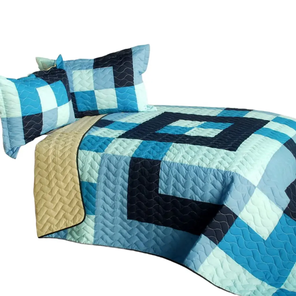 Slickblue Full/queen Bedding Set, Handmade Vermicelli Quilted Tc Fabric, Plaid Design, Blue, 90.5"x90.5", 3Pc