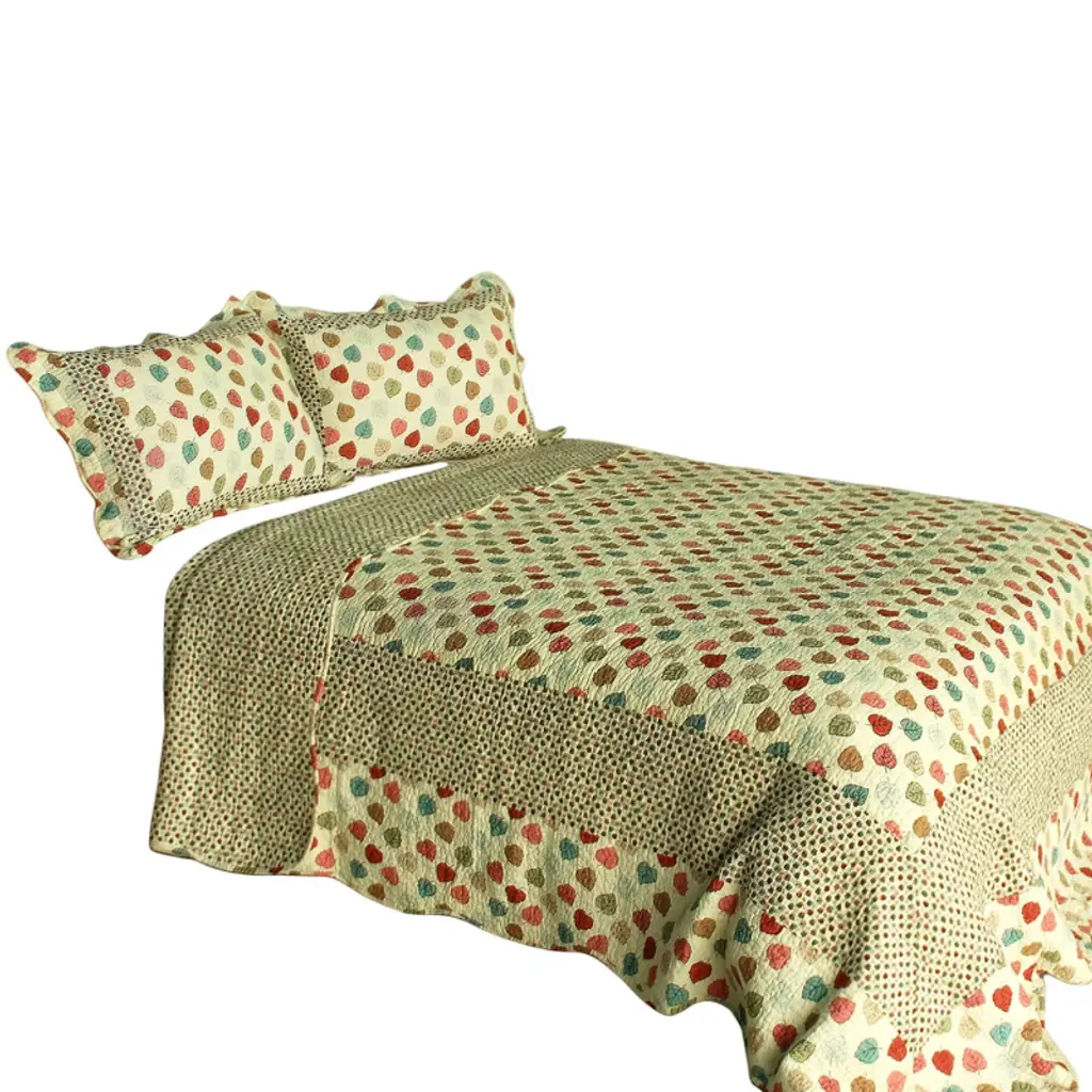 Slickblue Full/queen Cotton 3Pc Quilt Set — Green Floral Patchwork Vermicelli Quilted Bedding