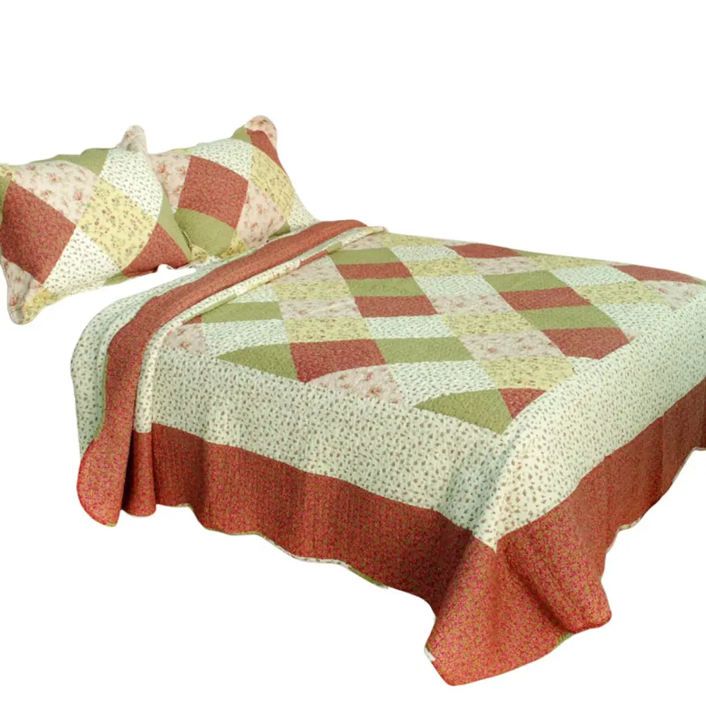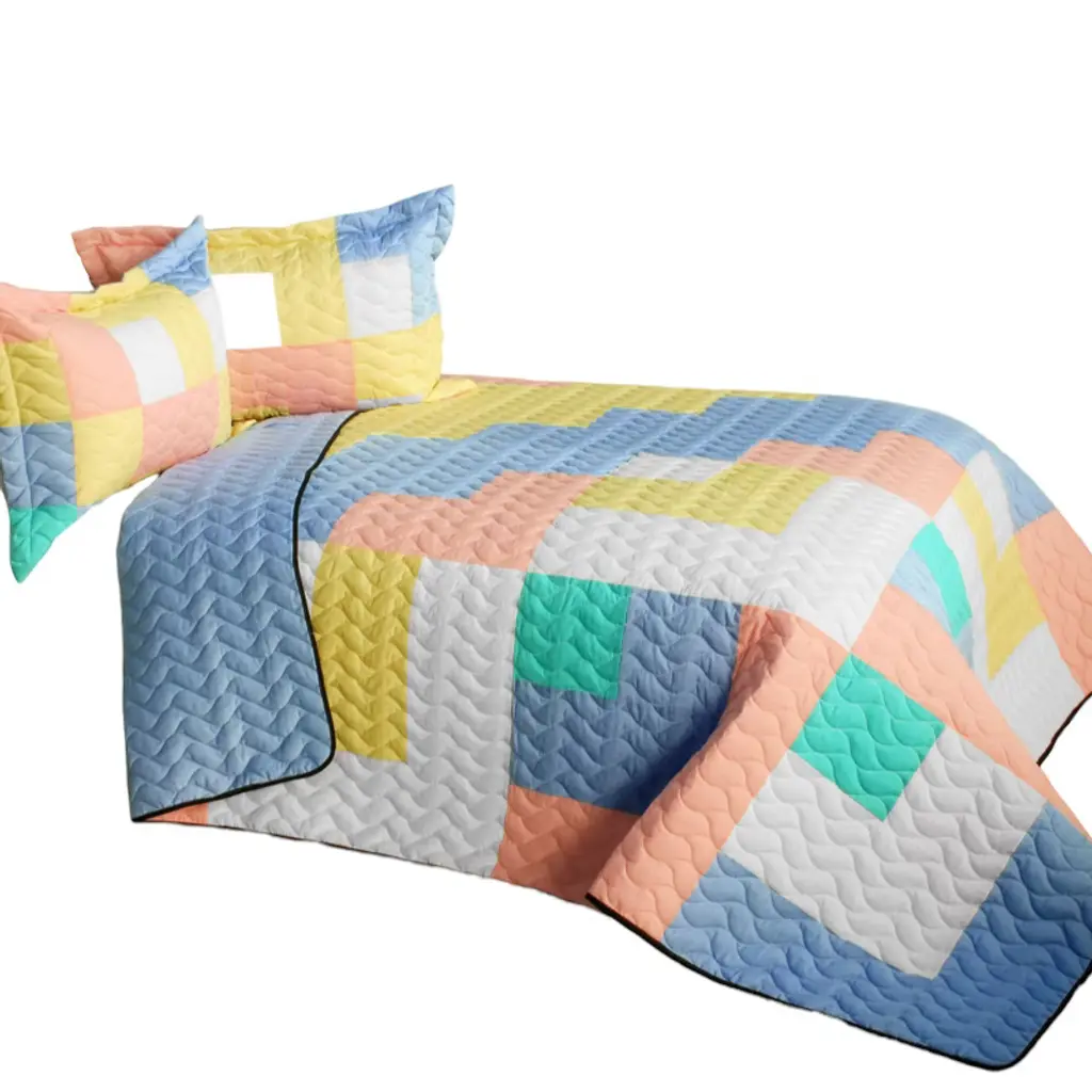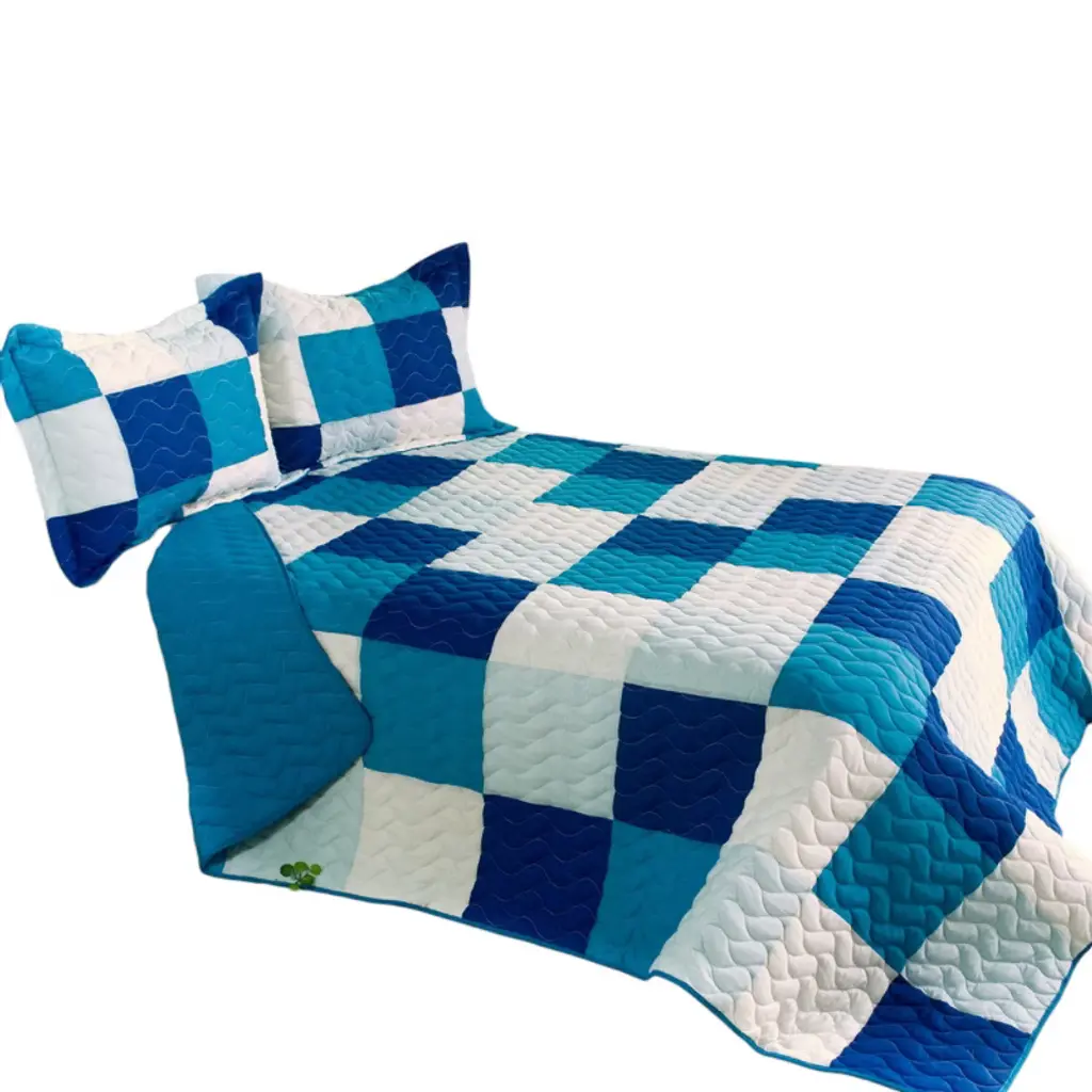 Slickblue Full/queen Cotton 3Pc Quilt Set — Vermicelli Quilted Printed Bedding, Machine Washable